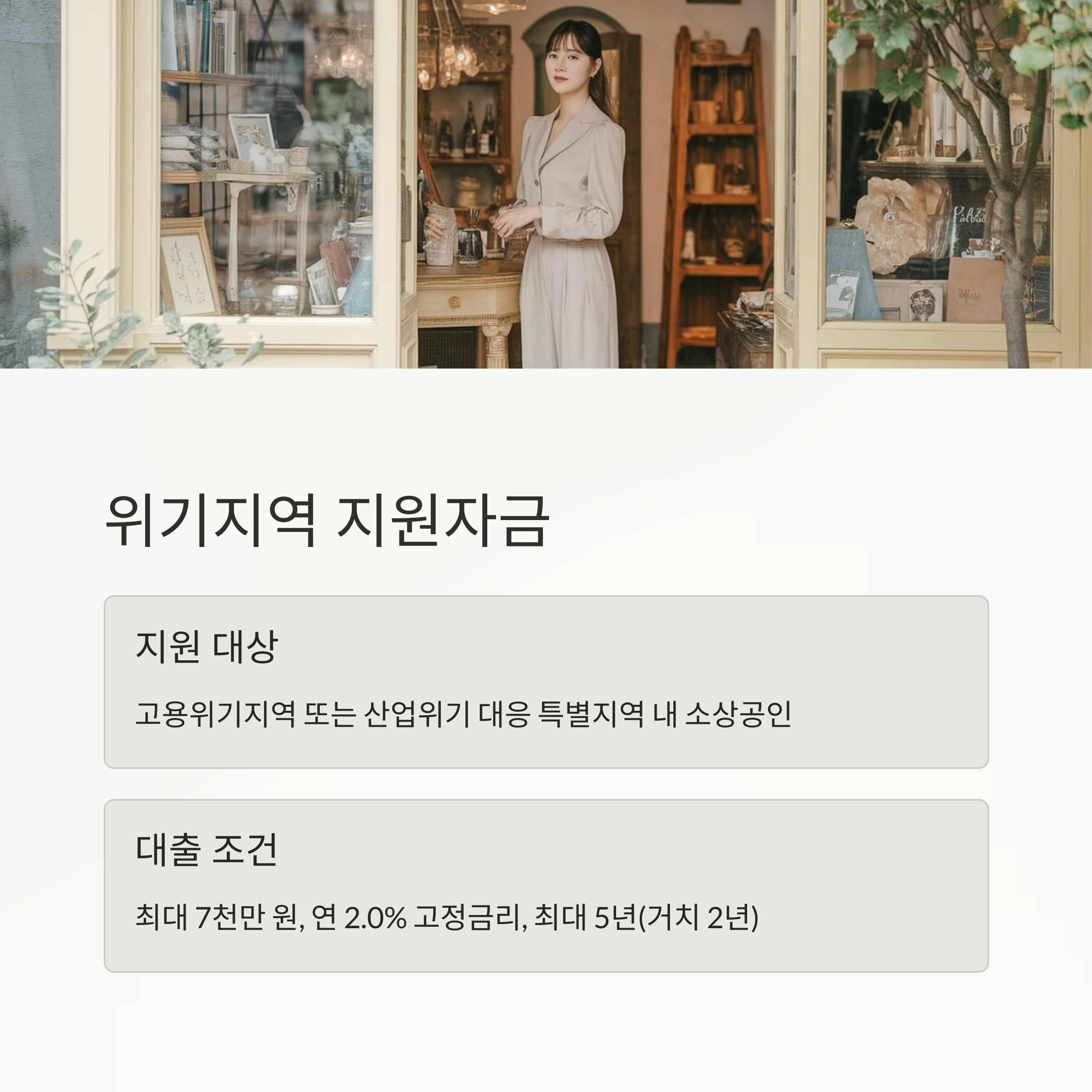 고용위기지역 또는 산업위기 대응 특별지역 내 소상공인이 대상입니다.