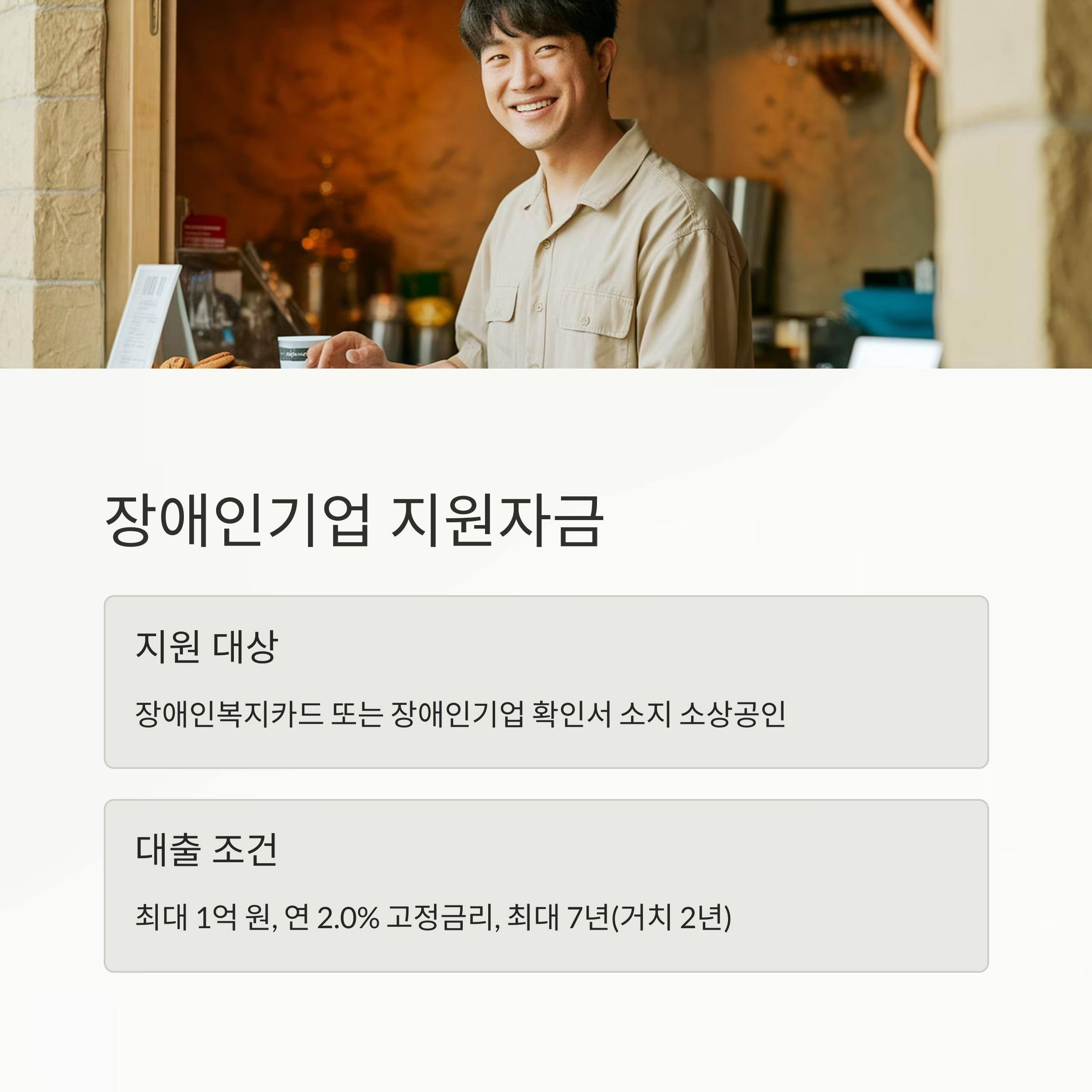 장애인복지카드 또는 장애인기업 확인서를 소지한 소상공인이라면 신청할 수 있습니다.