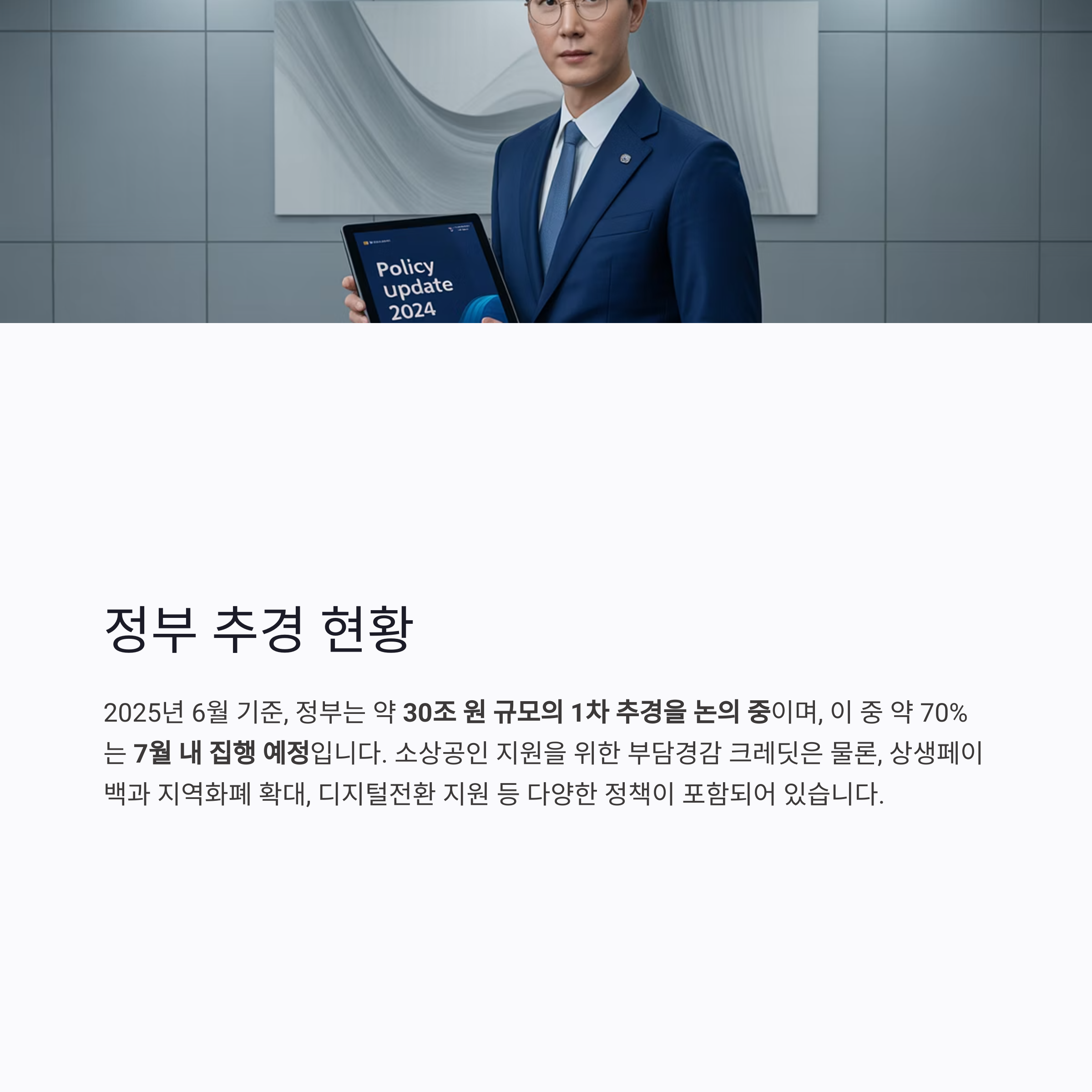 2025년 6월 기준, 정부는 약 30조 원 규모의 1차 추경을 논의 중이며, 이 중 약 70%는