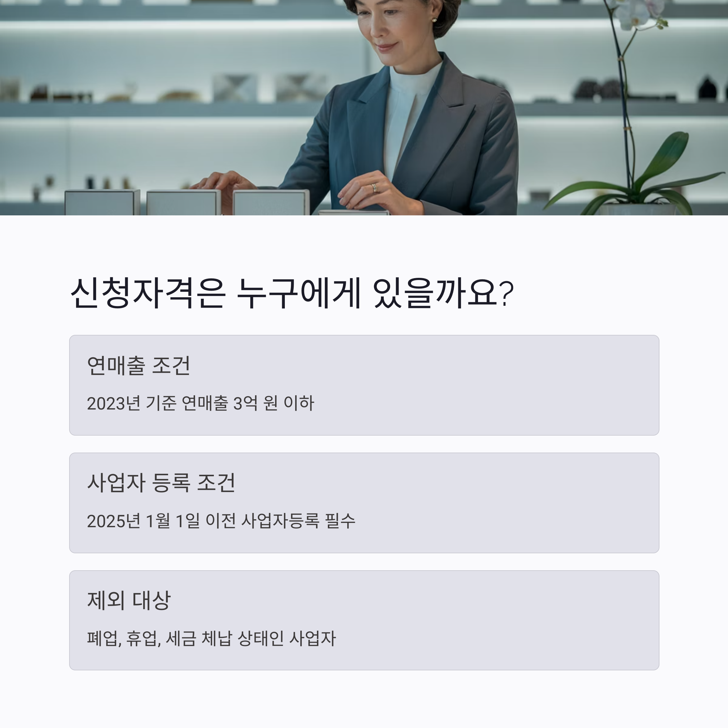 A1. 2023년 기준 연매출 3억 원 이하이면서 2025년 1월 이전 개업한 소상공인에게 지급됩니다.
