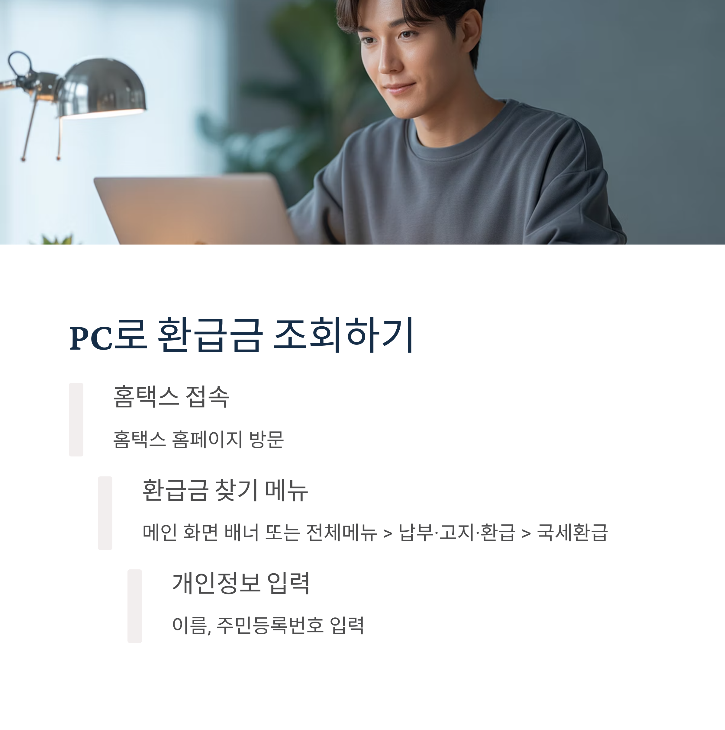 PC에서 홈택스 환급금을 확인하려면 아래의 절차를 따르세요.