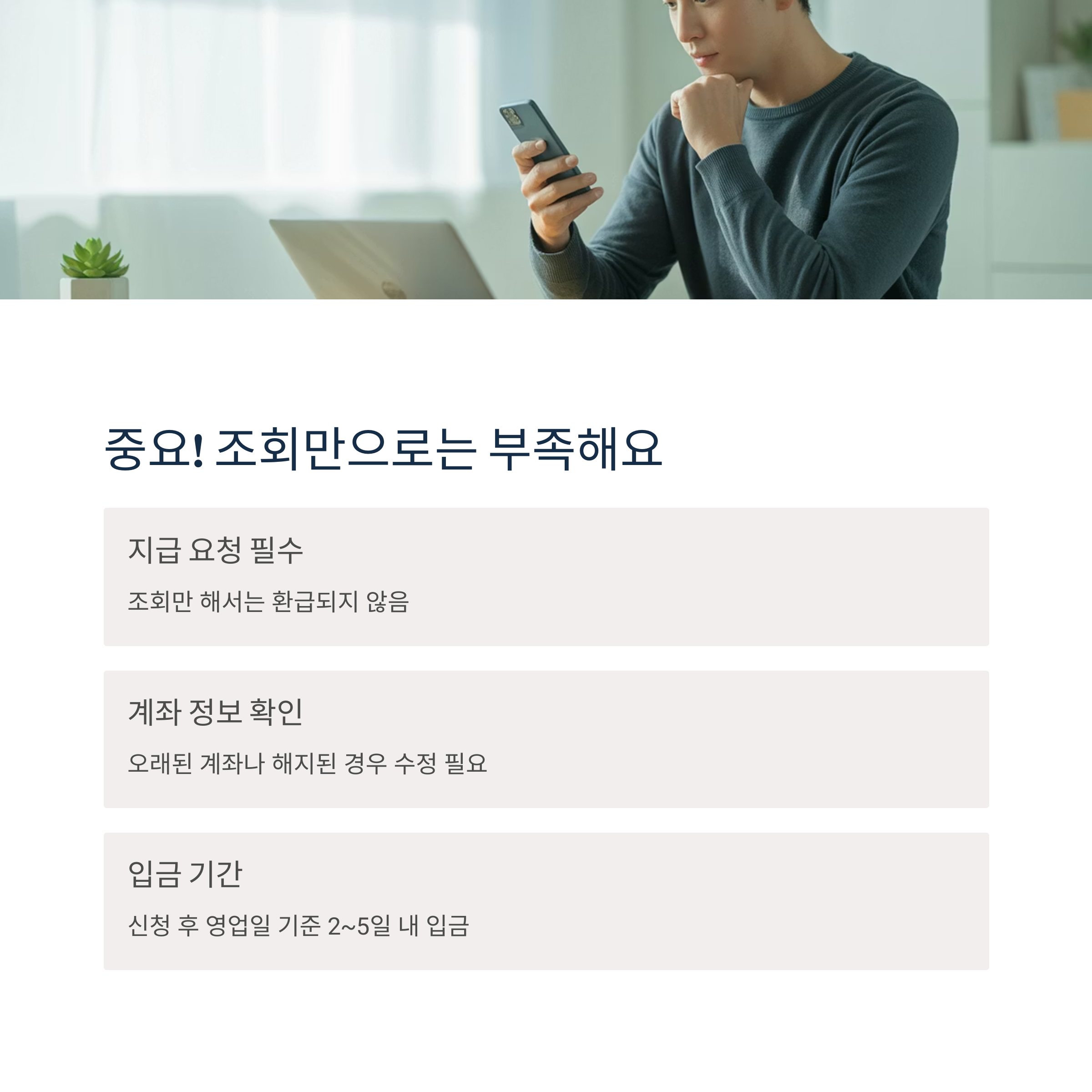 정부가 제공하는 공식 채널을 통해 안전하게 조회하고 환급받아, 내 돈을 제대로 챙기시길 바랍니다.