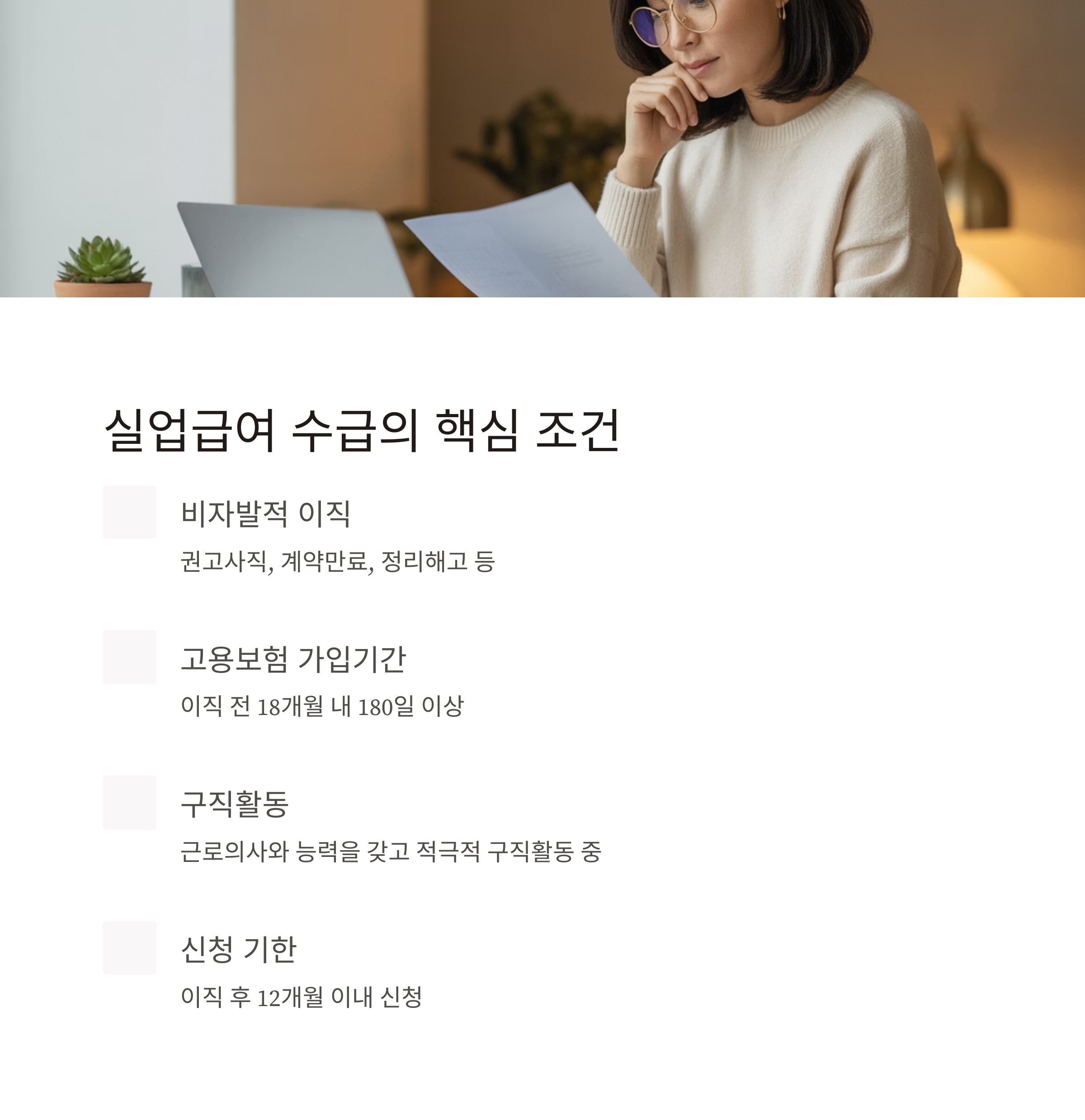 1. 실업급여 수급 조건 요약
