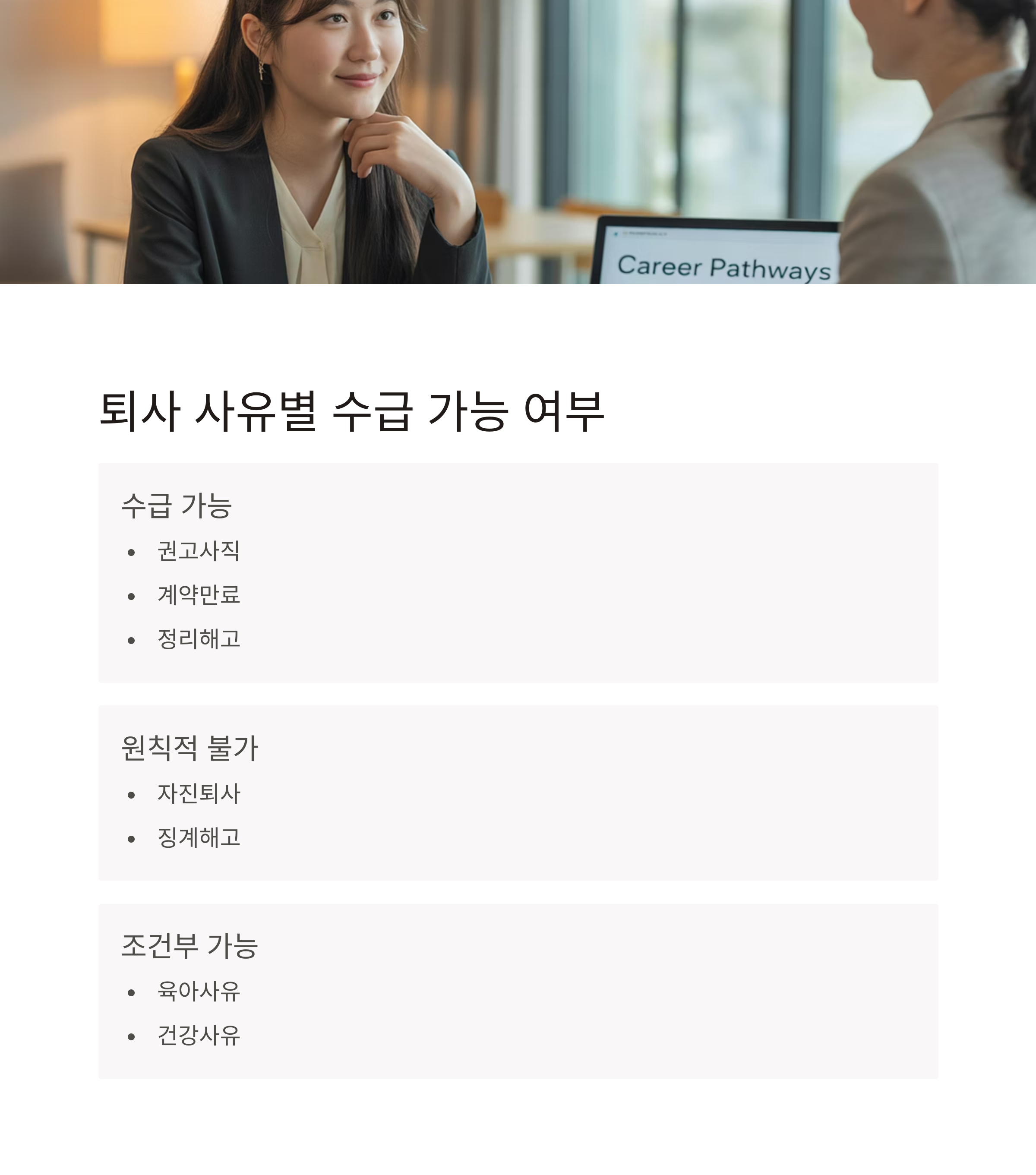 ✅ 주의: 본인의 귀책 사유로 퇴사한 경우(예: 자진 퇴사)는 원칙적으로 실업급여 대상이 아닙니다.