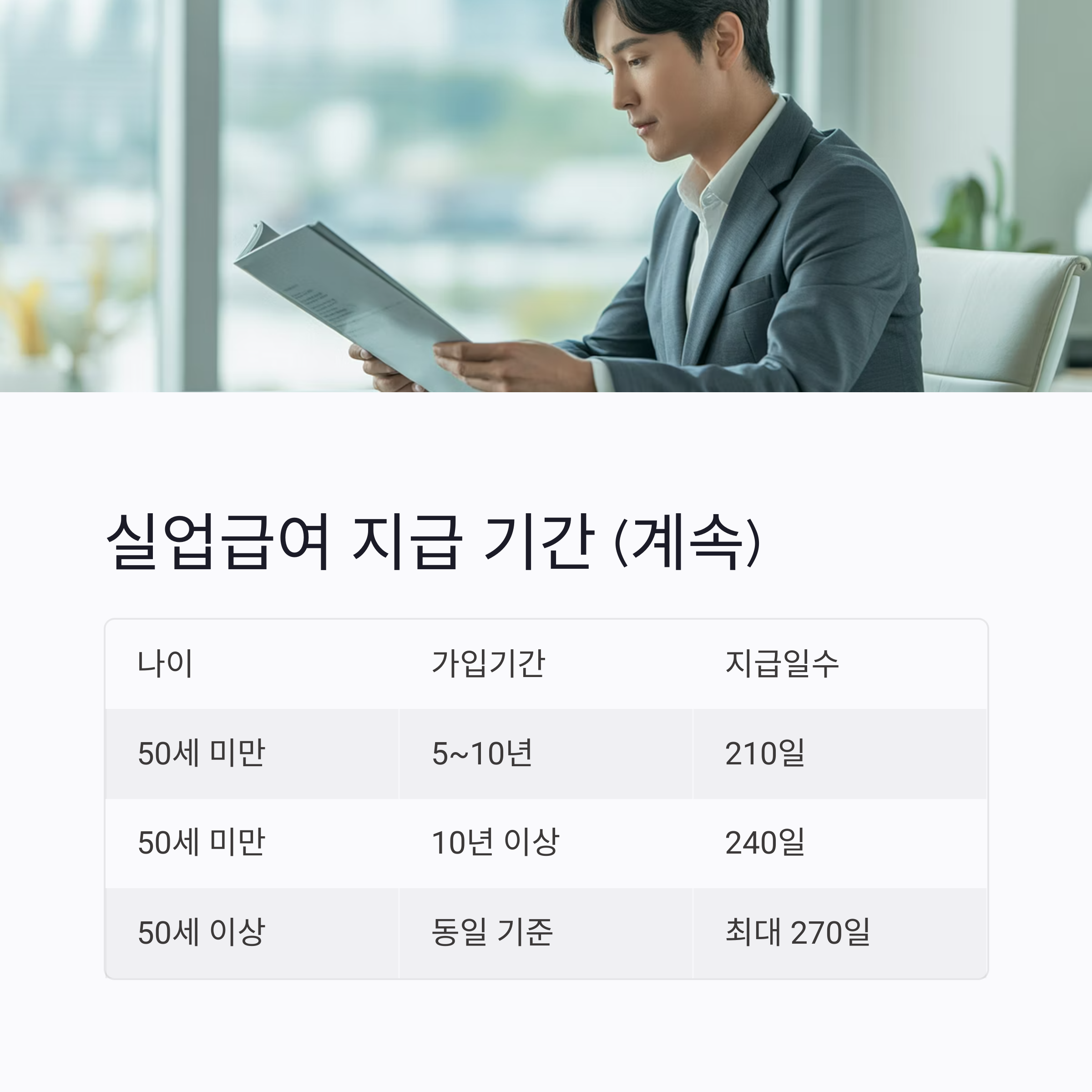 실업급여는 최소 120일부터 최대 270일까지 지급되며, 나이와 고용보험 가입 기간에 따라 달라집니다.