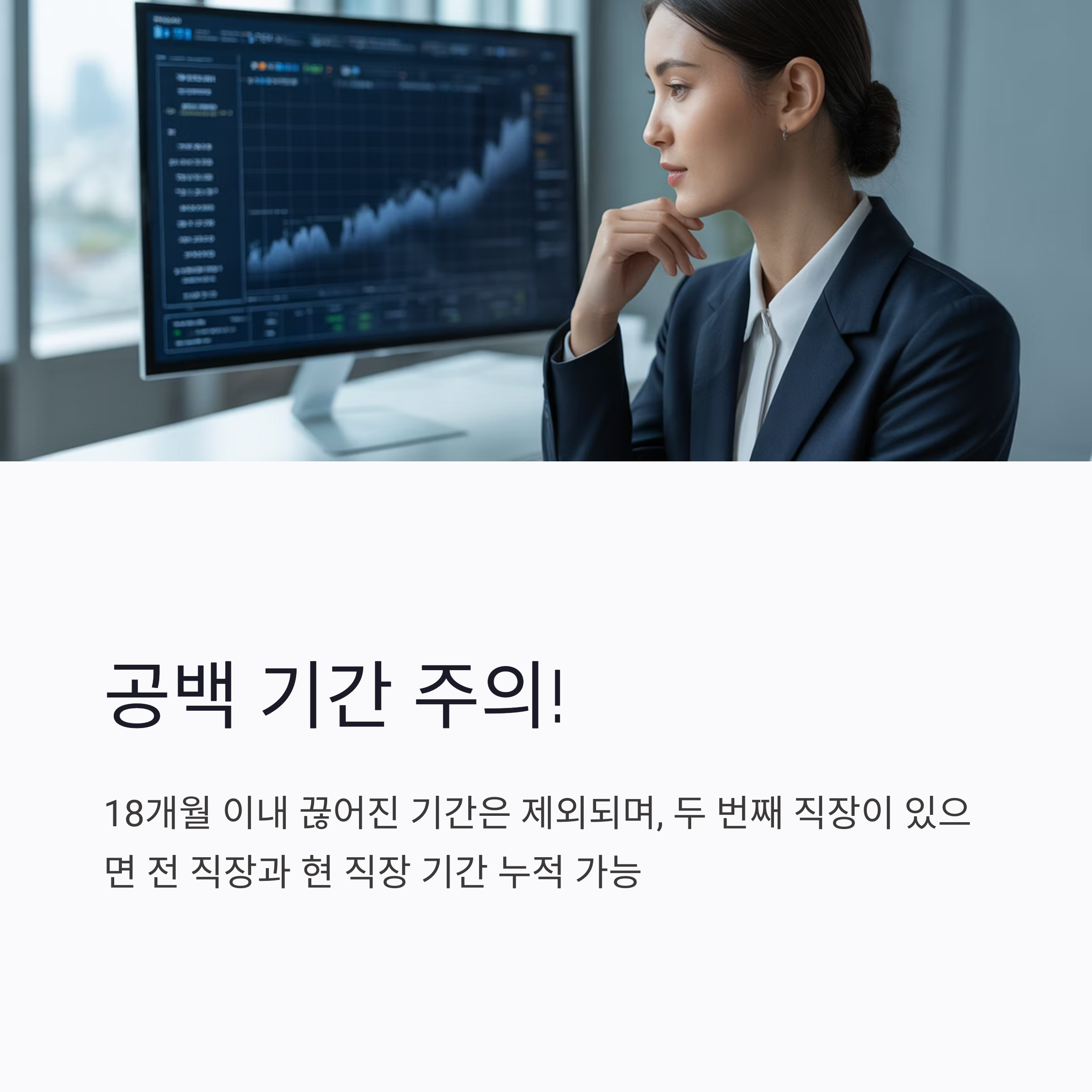 - 두 번째 직장이 있으면, 전 직장 + 현 직장 기간 누적 가능