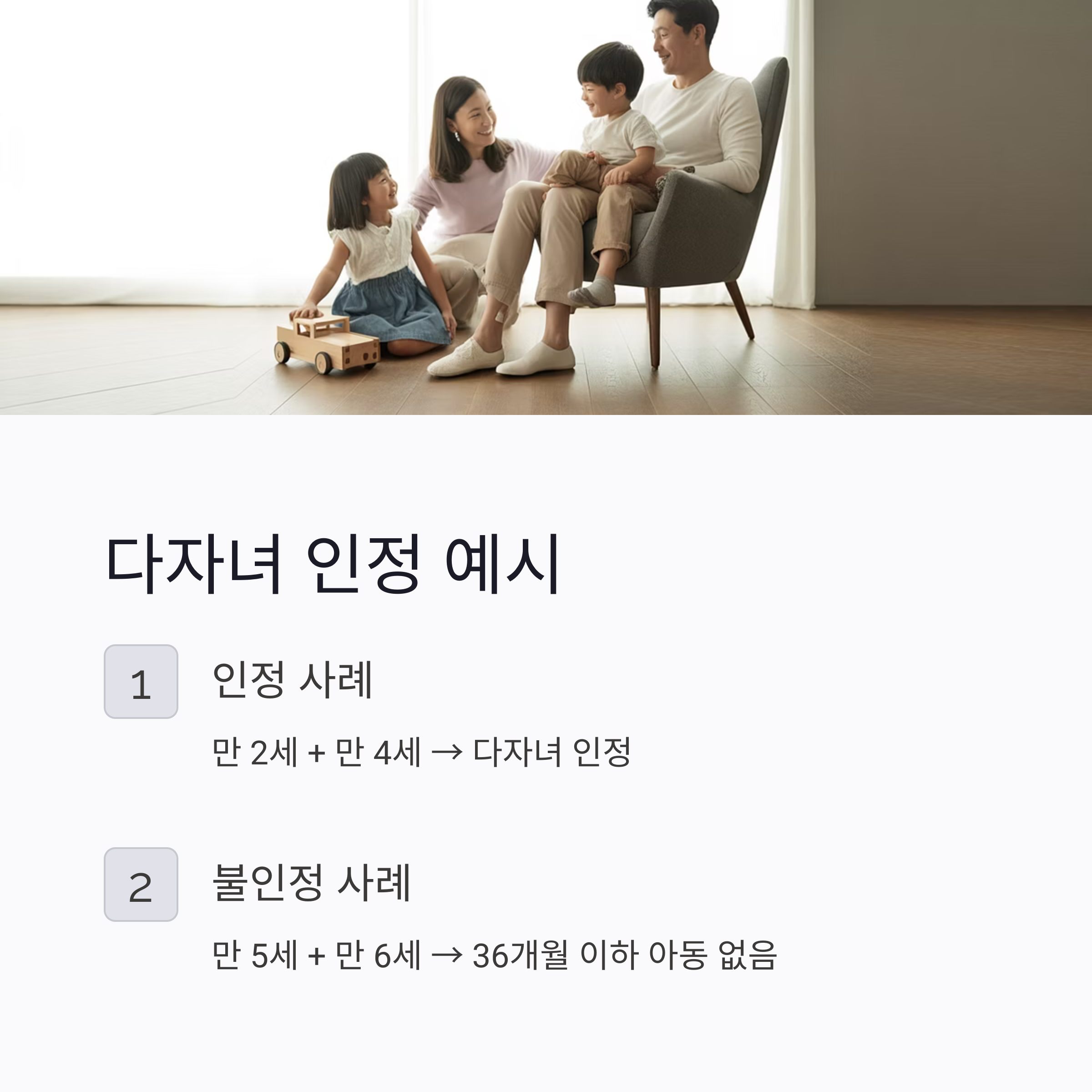 ✔ 예시 1: 만 2세 + 만 4세 → ✅ 다자녀 인정