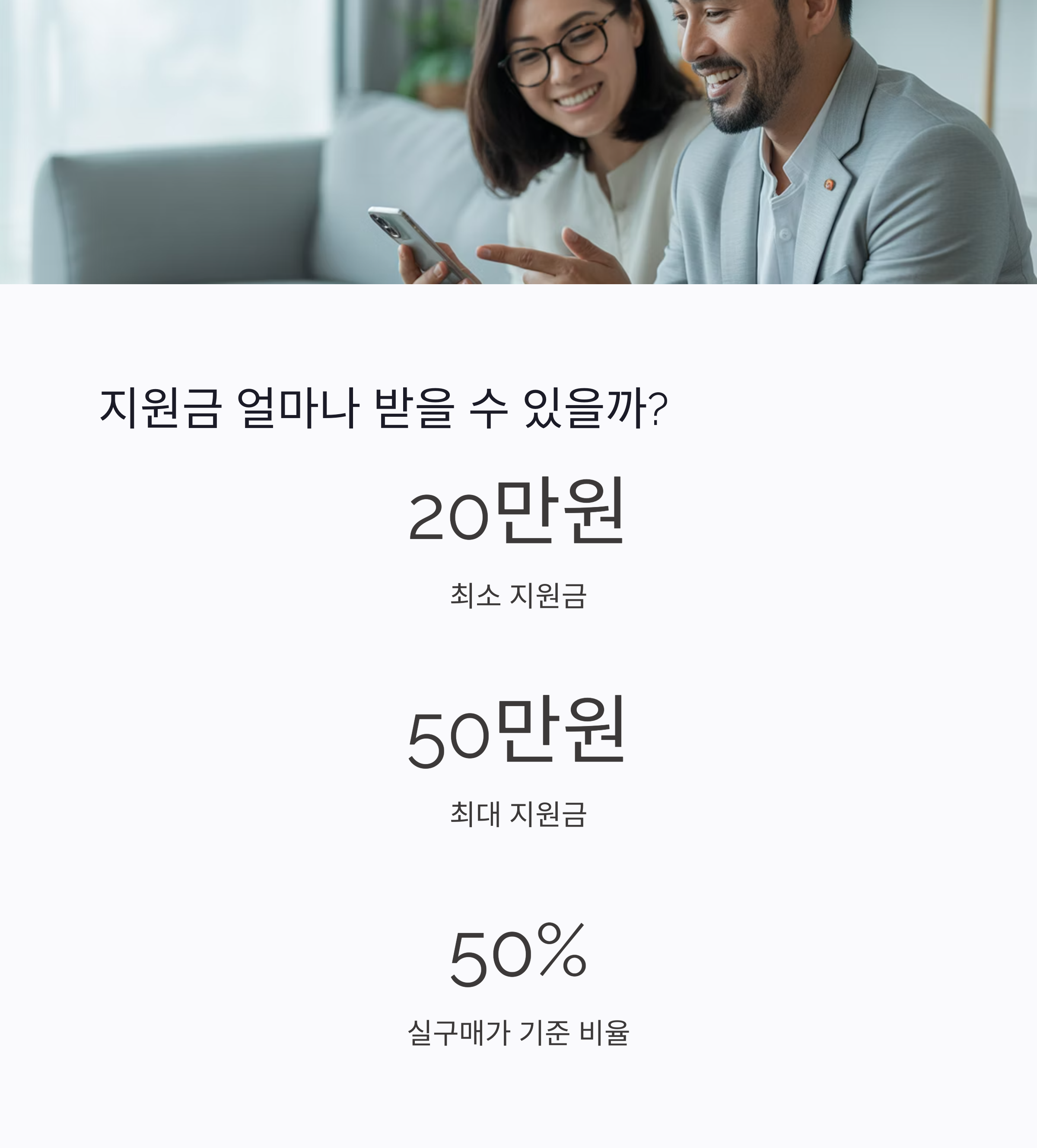 ✅ 정액 지원 (예: 30만 원 고정) 혹은 실구매가 기준 비율 지원 (예: 50%)