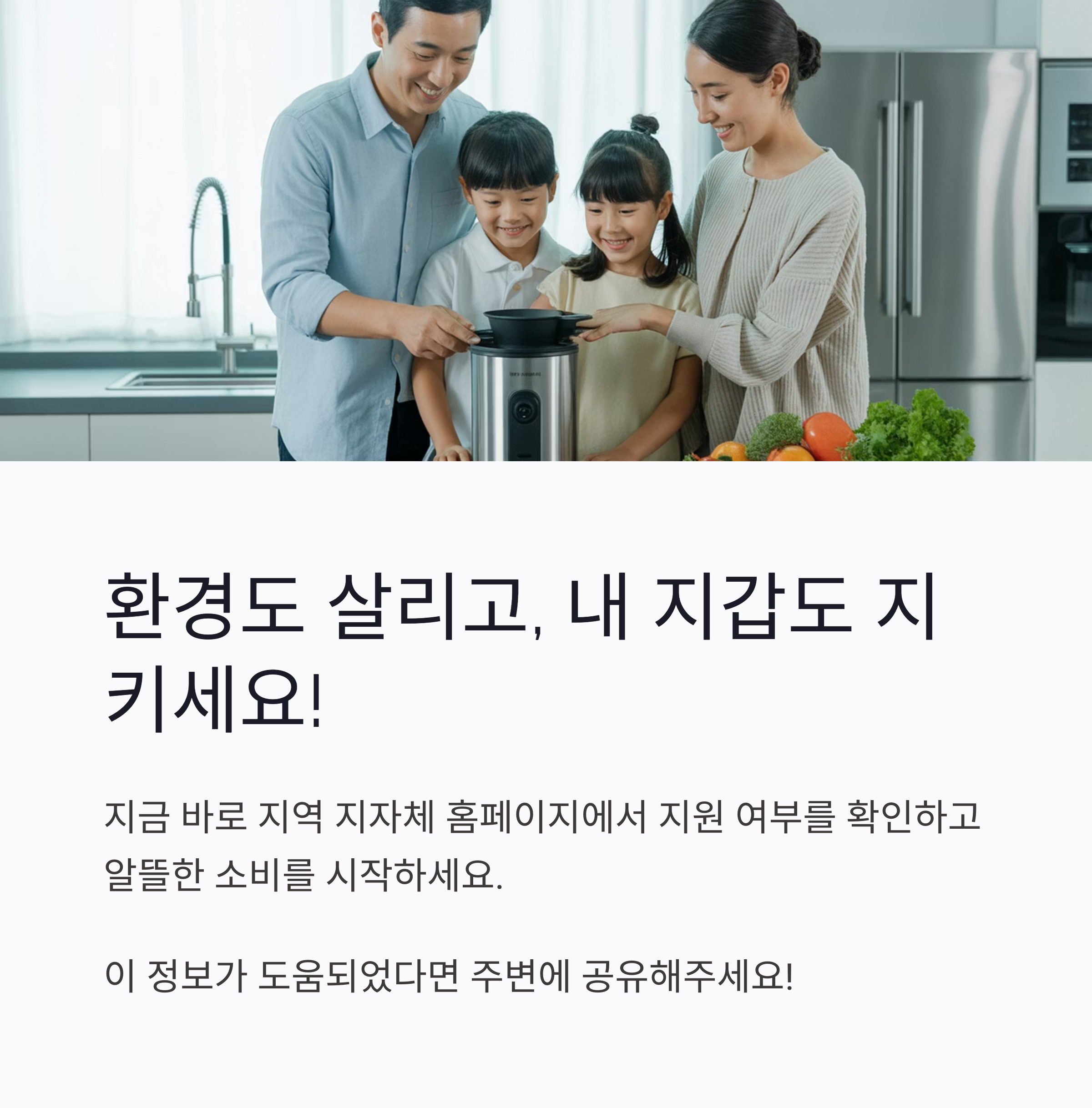 지금 바로 지역 지자체 홈페이지를 통해 지원 여부를 확인하고, 알뜰한 소비를 시작해보세요! 환경도 살리고, 내 지갑도 지키는 일석이조 기회입니다.