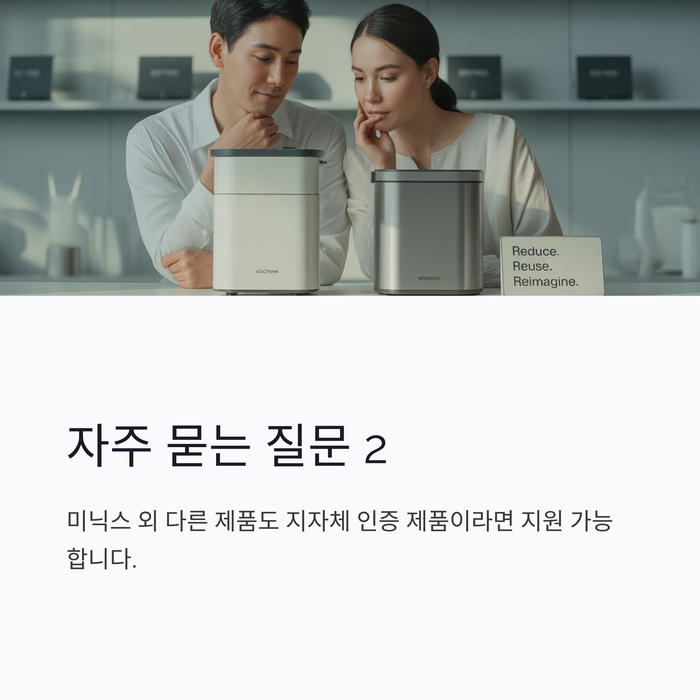 정부는 환경부 주관으로 전국 지자체와 협력하여 음식물 쓰레기 문제 해결을 위해 음식물처리기 구매를 장려하고 있습니다. 그중 미닉스는 인증된 친환경 가전으로, 지원 대상 제품으로 포함되어 있죠.