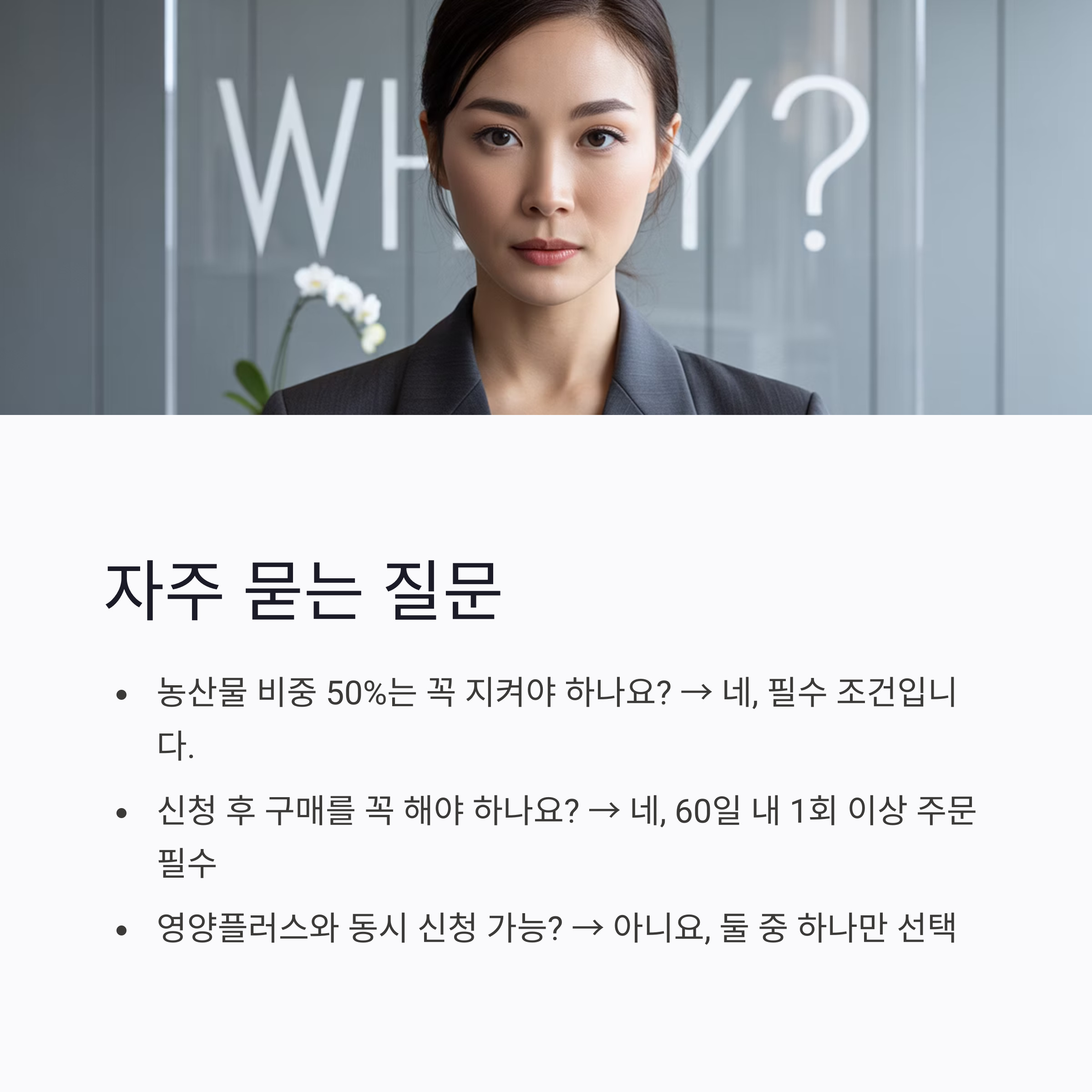 ✅ 단, 농산물 비중 50% 이상 필수 조건 존재