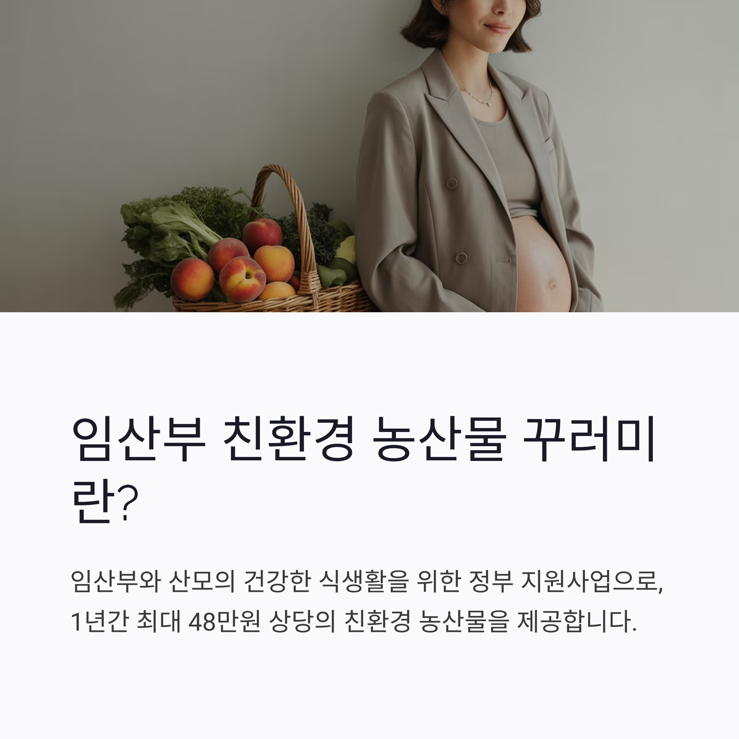 임산부와 산모의 건강한 식생활을 위한 정부 지원사업으로, 국내산 친환경 농산물을 이용할 수 있도록 1년간 최대 48만원 상당의 혜택을 제공합니다.