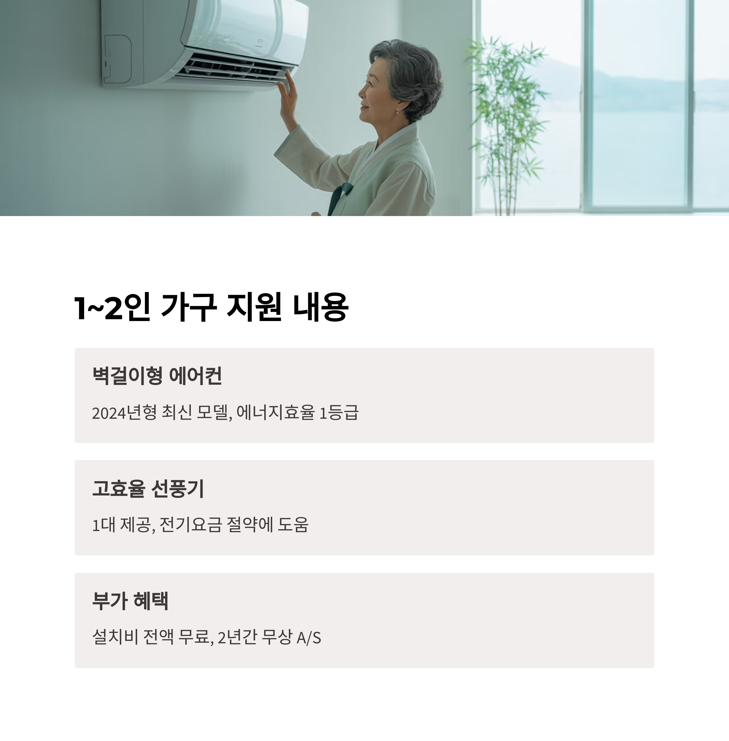 ✔ 지원 품목: 벽걸이형/스탠드형 에어컨, 고효율 선풍기