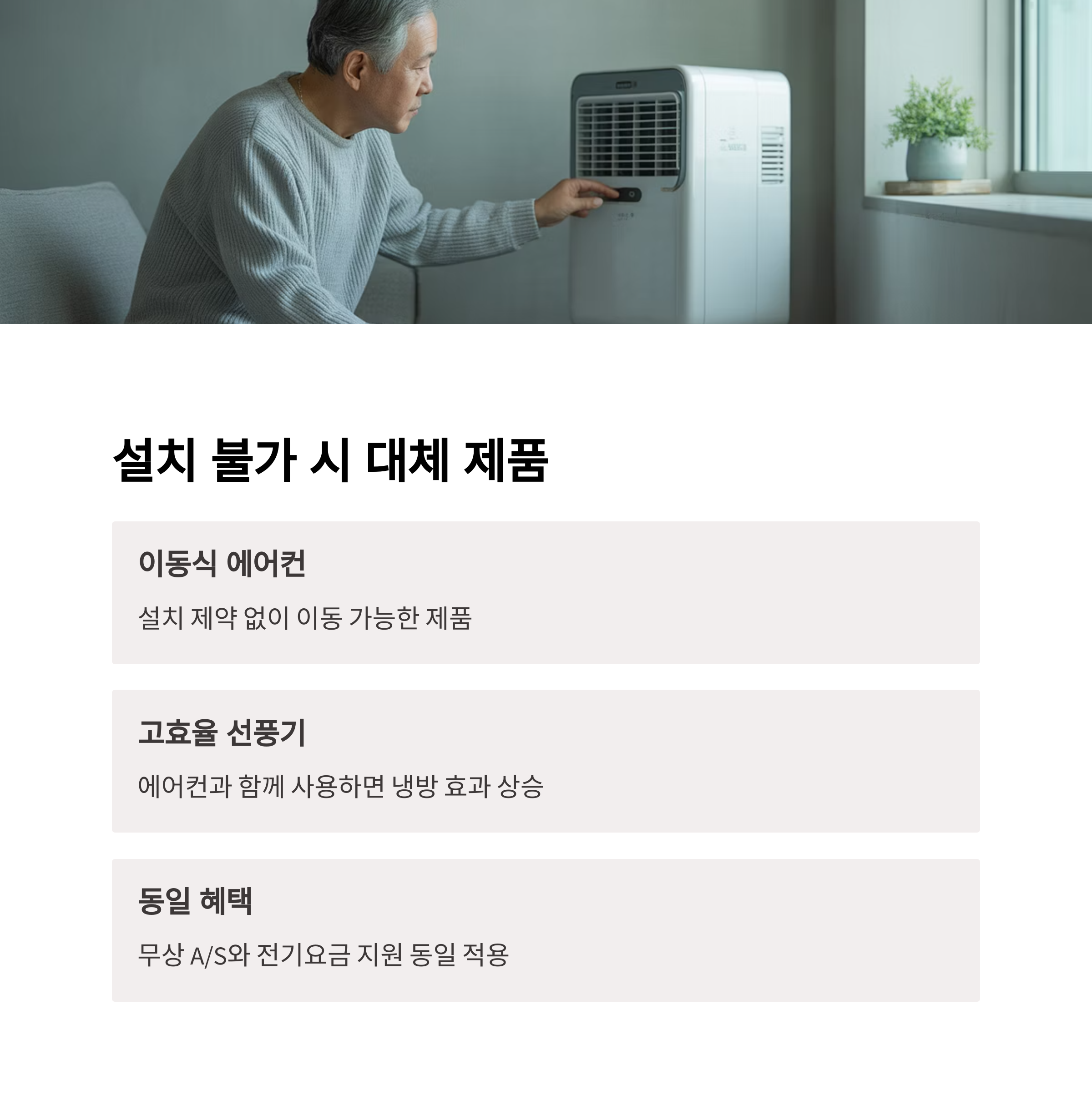 Q3. 에어컨 설치가 어렵다고 들었는데 대체방안은 있나요?