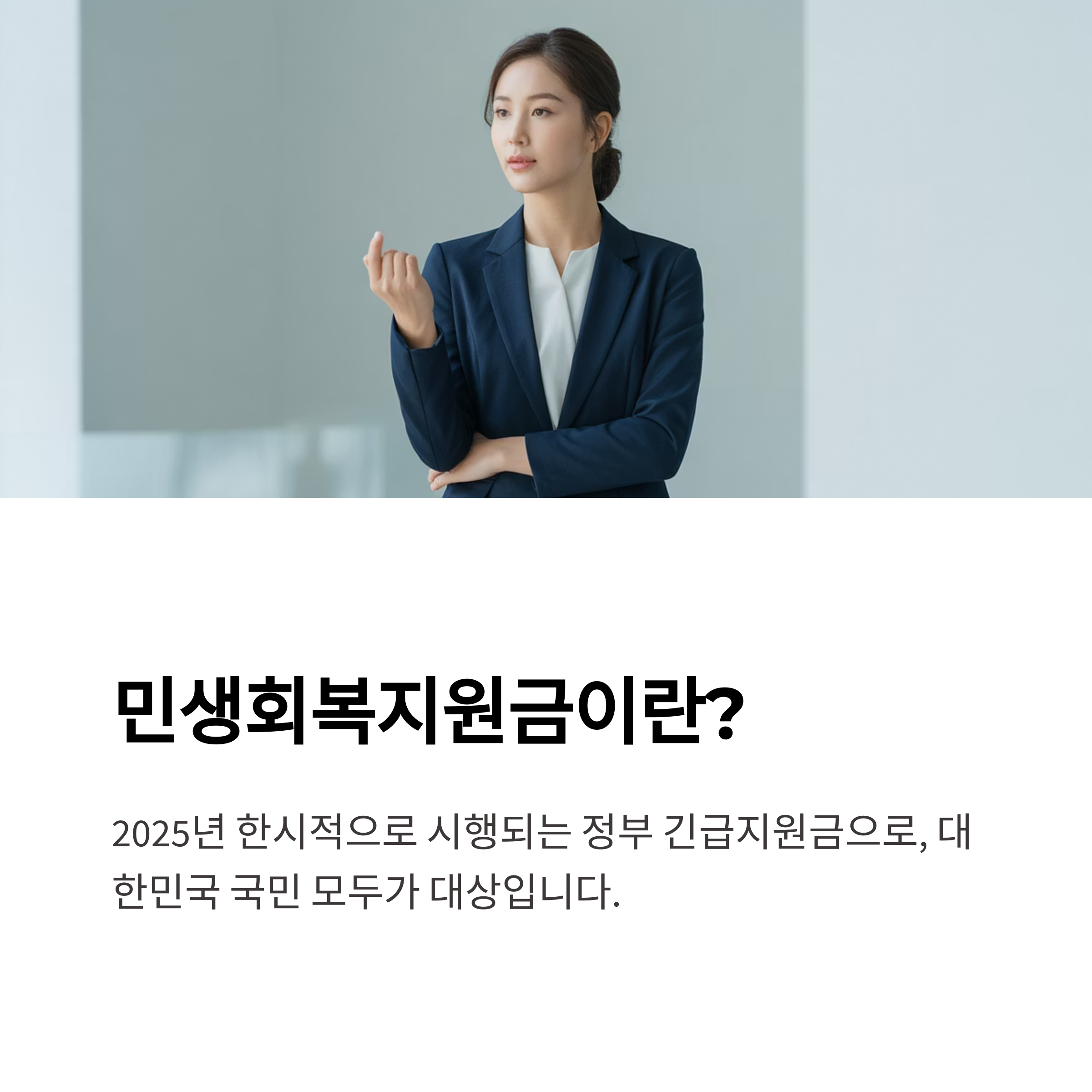 민생회복지원금은 2025년 한시적으로 시행되는 정부 긴급지원금 제도로, 대한민국 국민 모두가 대상입니다.