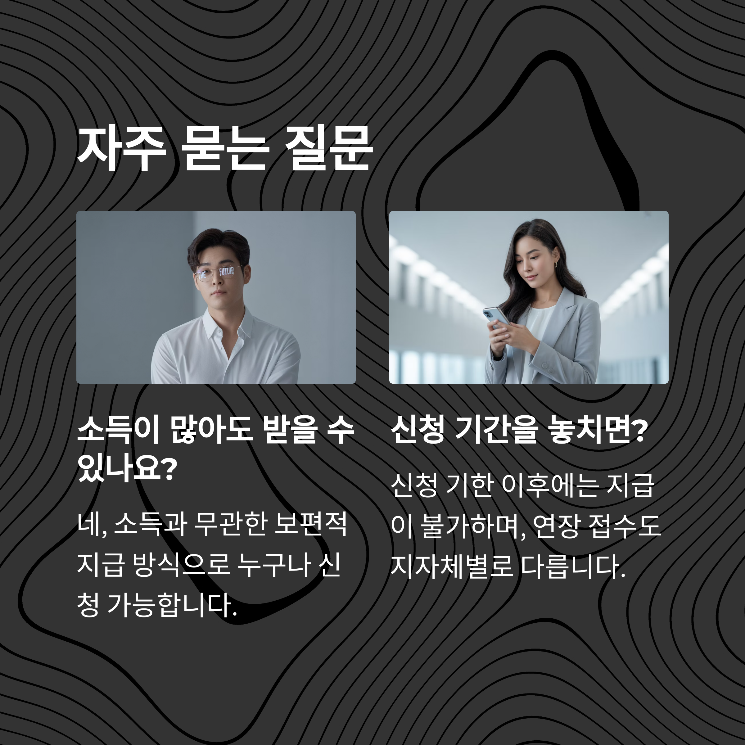 A1. 네, 이번 지원금은 소득과 무관한 보편적 지급 방식으로, 누구나 신청 가능합니다.
