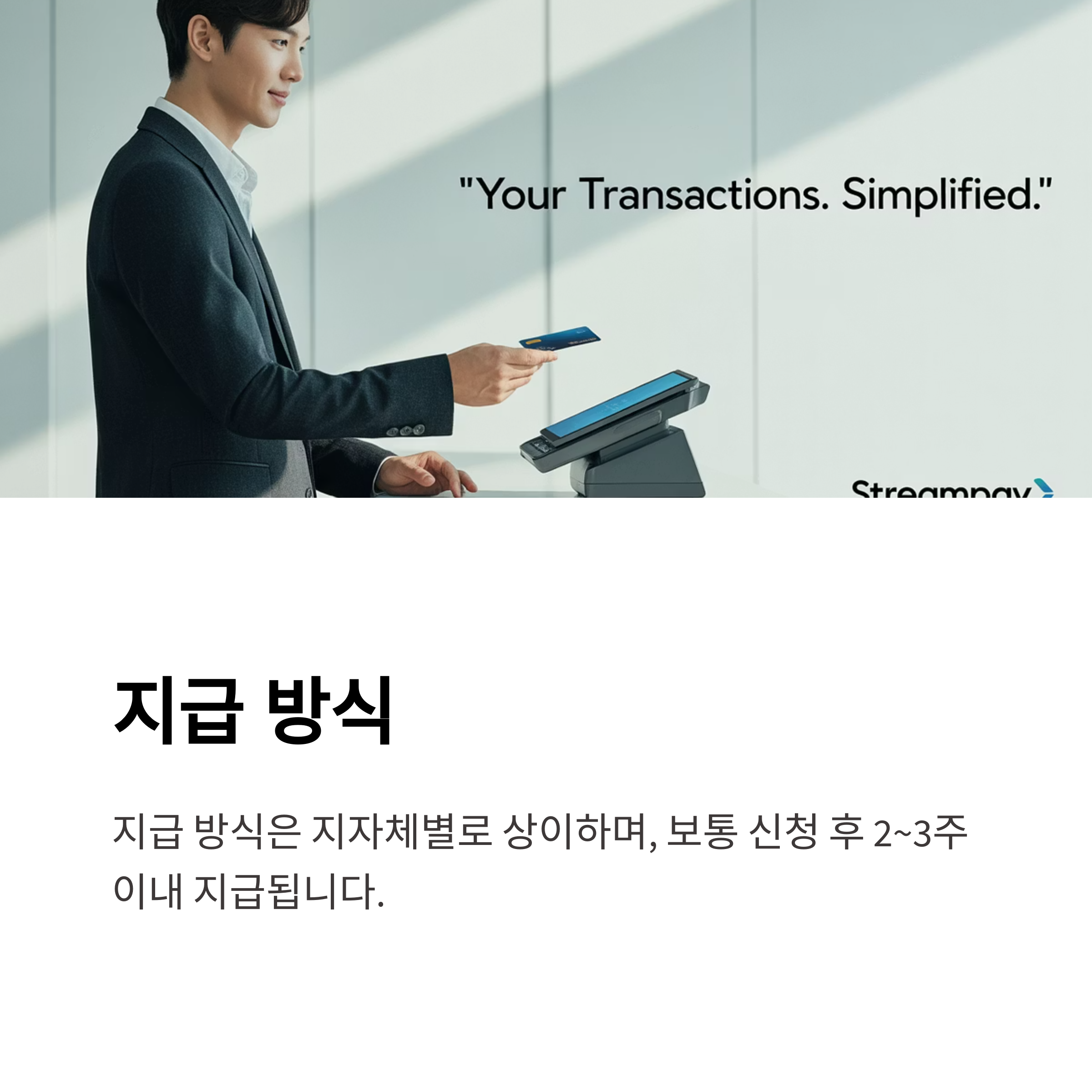 지급 방식은 지자체별로 상이하며, 보통 신청 후 2~3주 이내 지급됩니다.