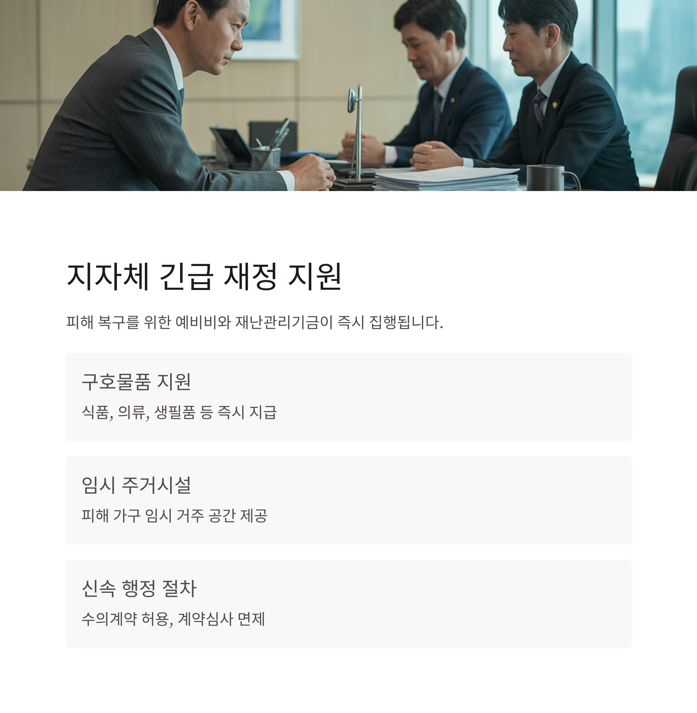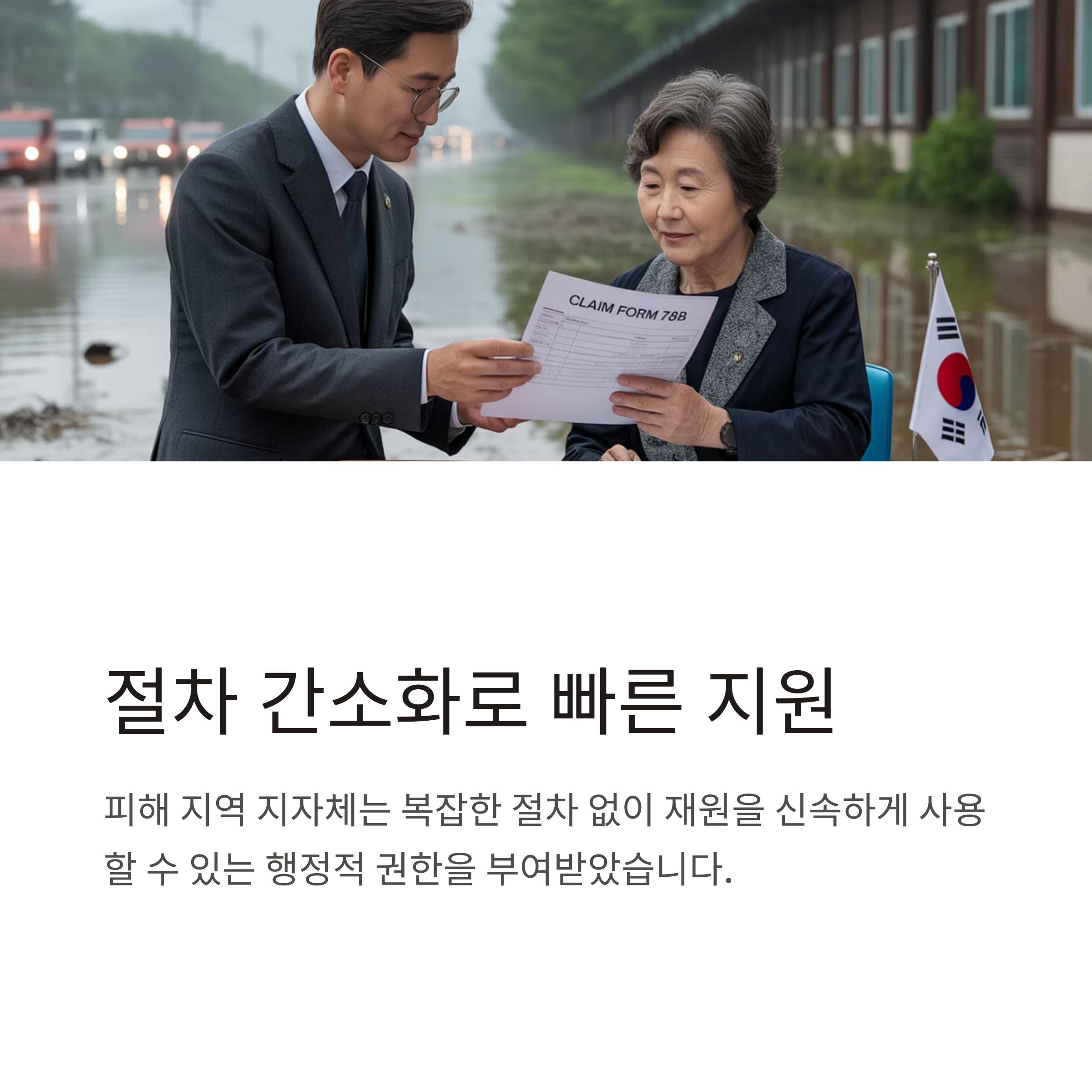 피해 지역 지자체는 복잡한 절차 없이 재원을 신속하게 사용할 수 있는 행정적 권한을 부여받았습니다.