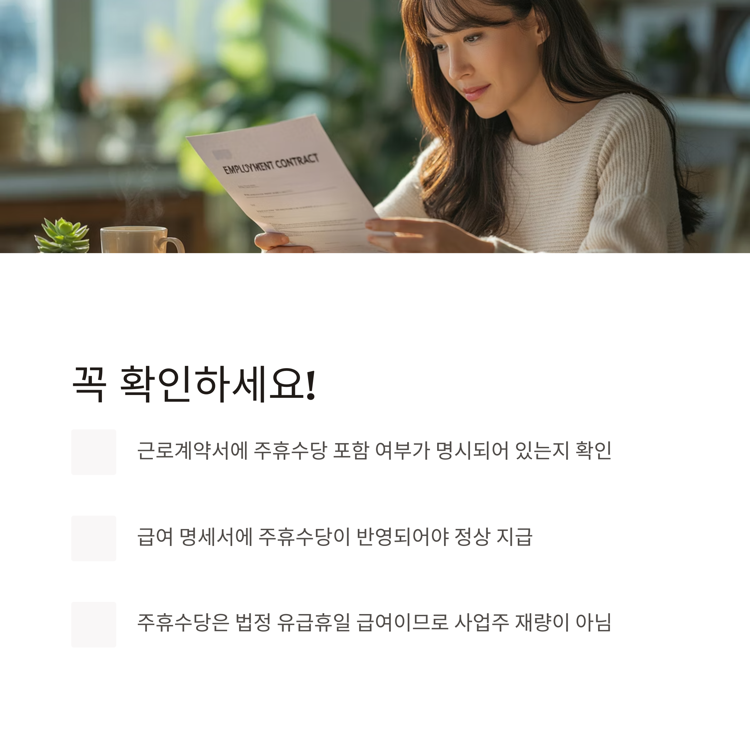 💡 근로계약서에 주휴수당 포함 여부가 명시되어 있는지 확인하세요.