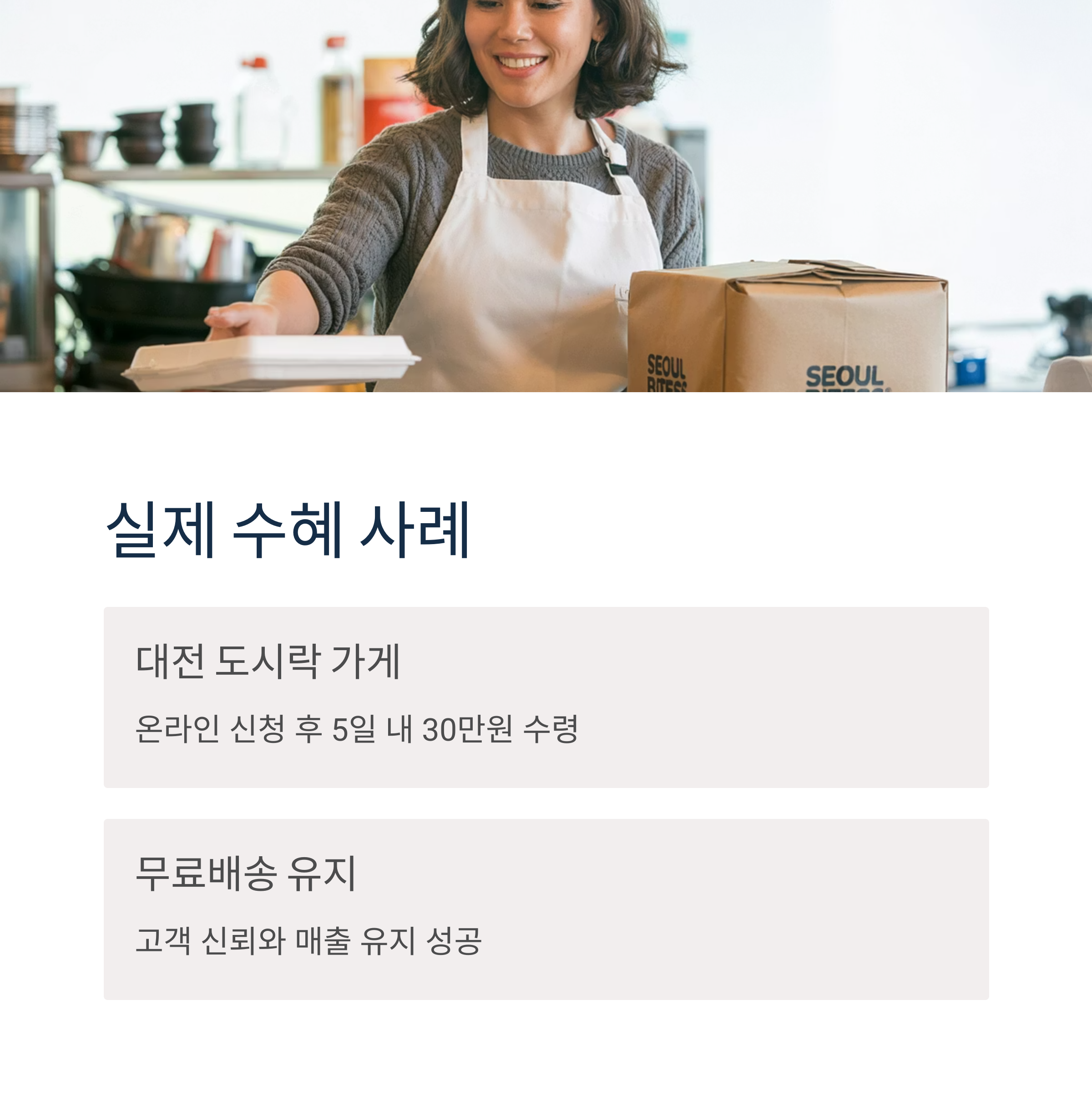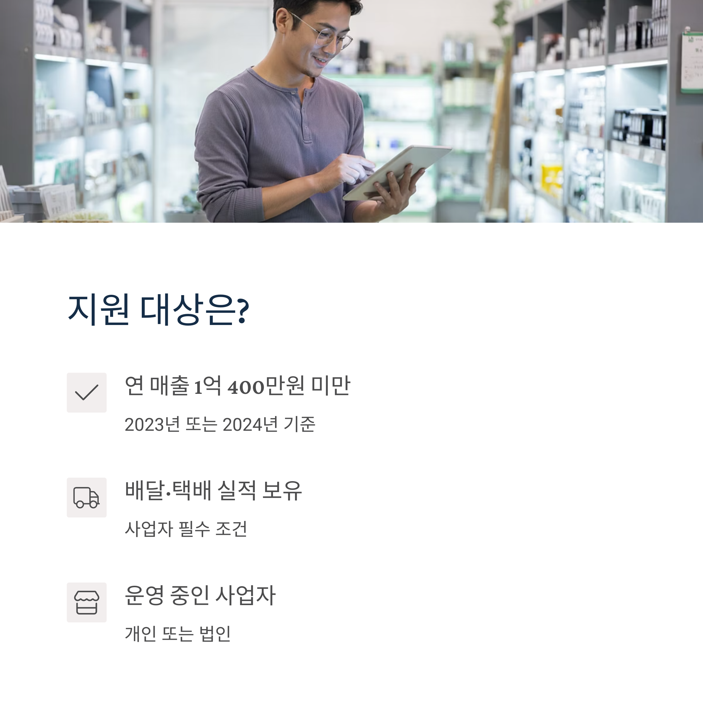 ▶ 지원 대상: 연 매출 1억 400만 원 미만 소상공인