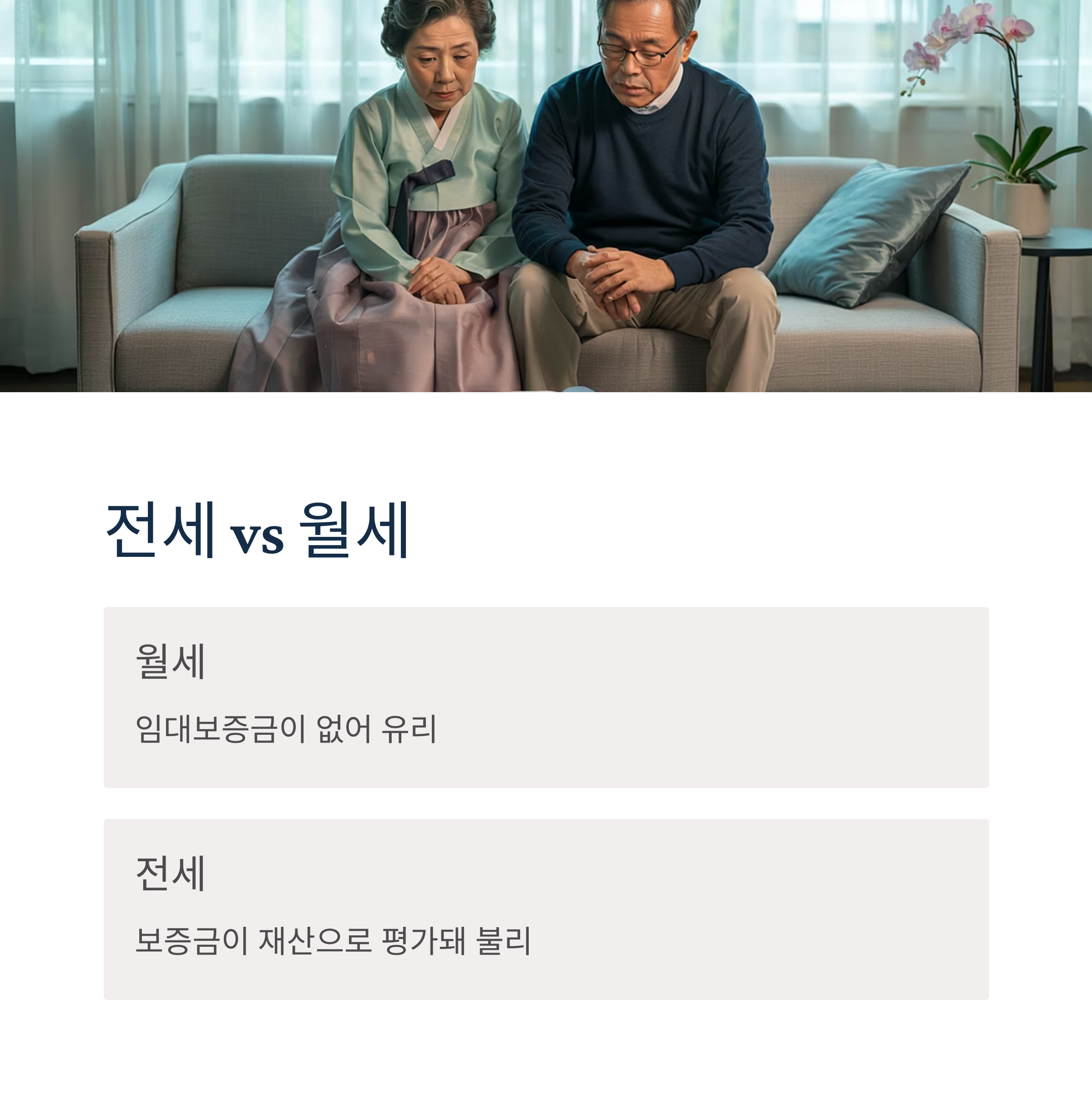 ✔ 전세: 보증금이 재산으로 평가돼 불리
