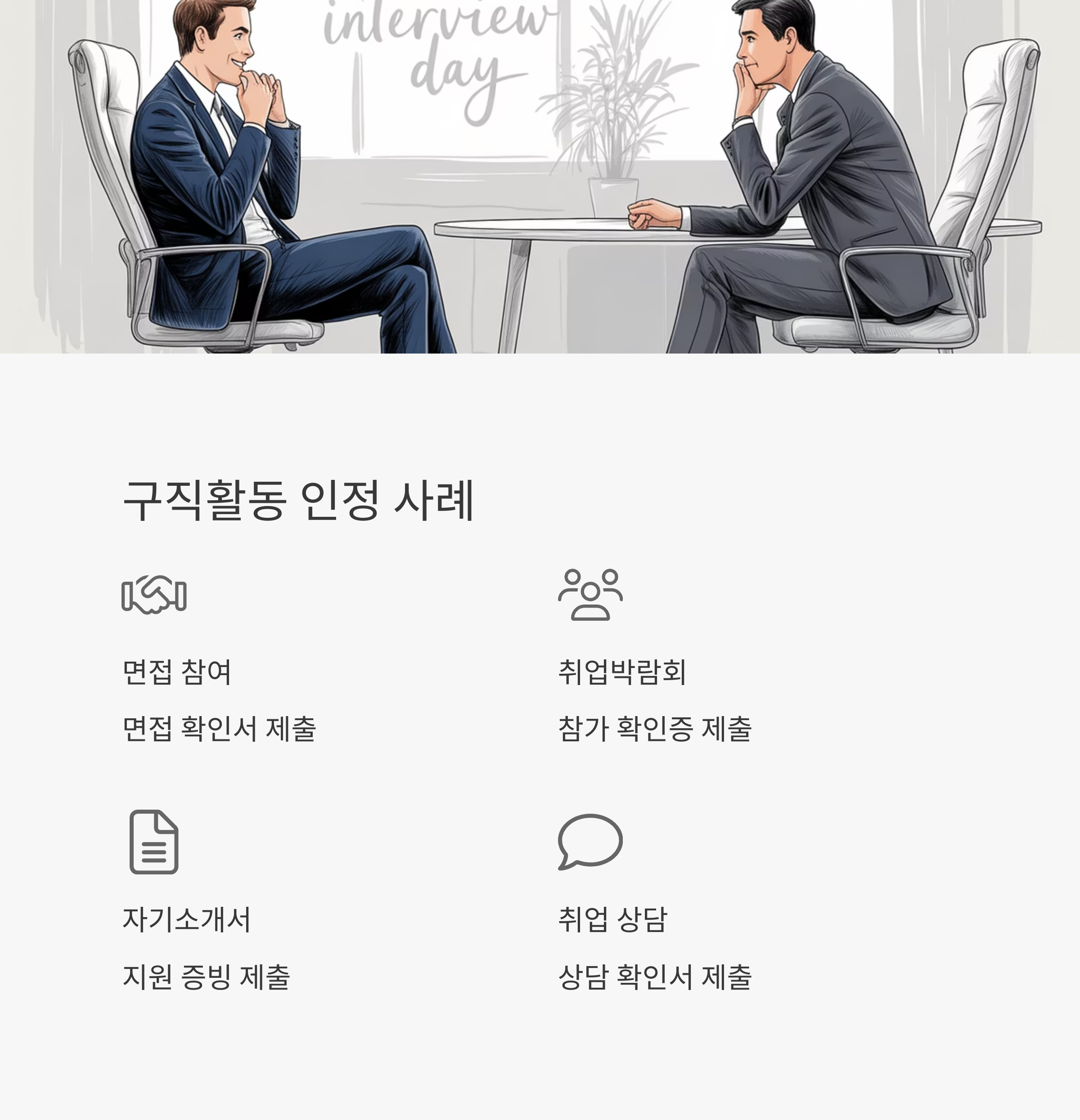 ✔ 면접 참석, 취업박람회 방문, 직업심리검사 등 인정됨