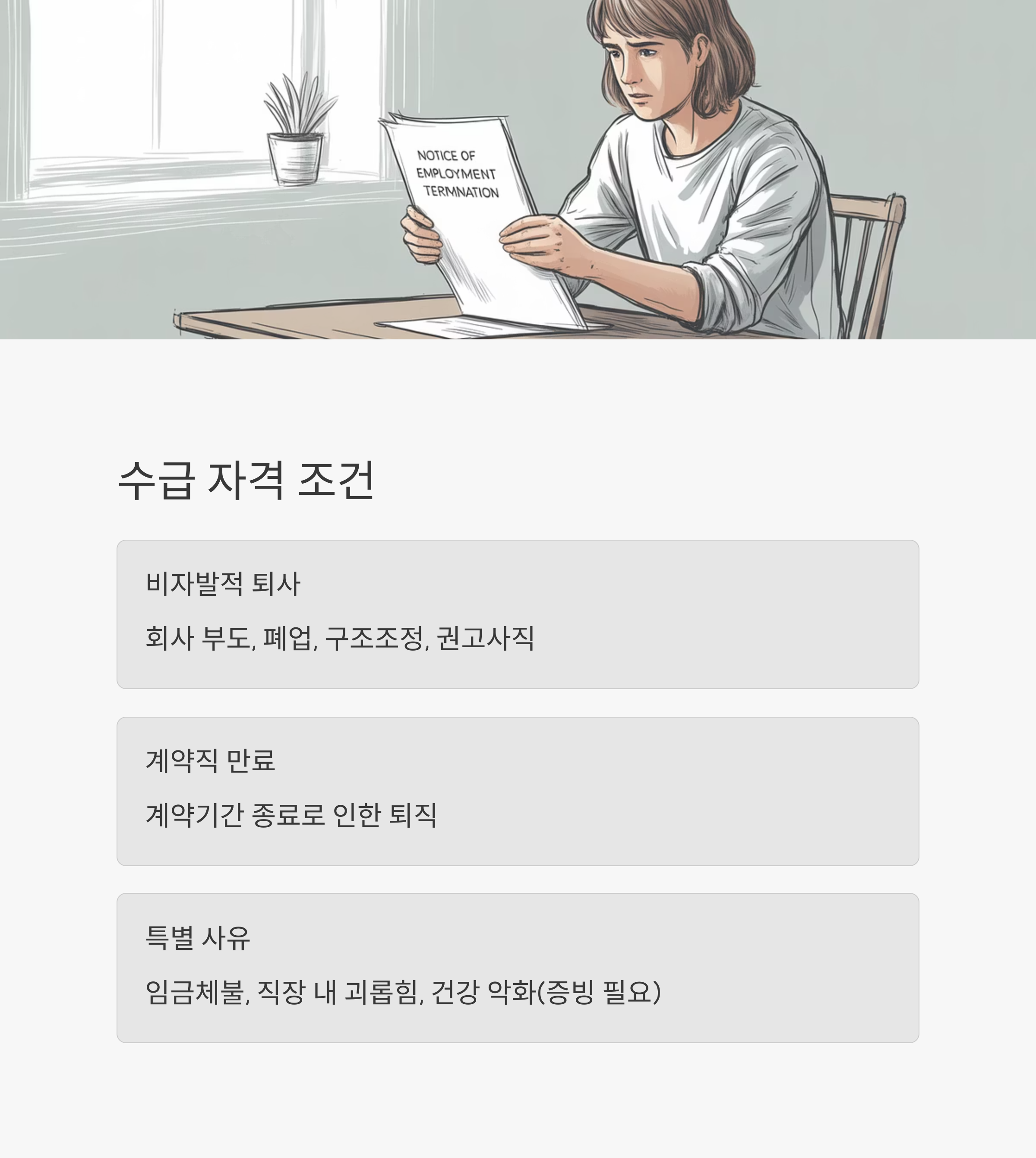 A5. 임금체불, 괴롭힘, 건강 문제 등 특별한 사유가 있고 증빙이 가능하면 자발적 퇴사도 수급 가능할 수 있습니다.