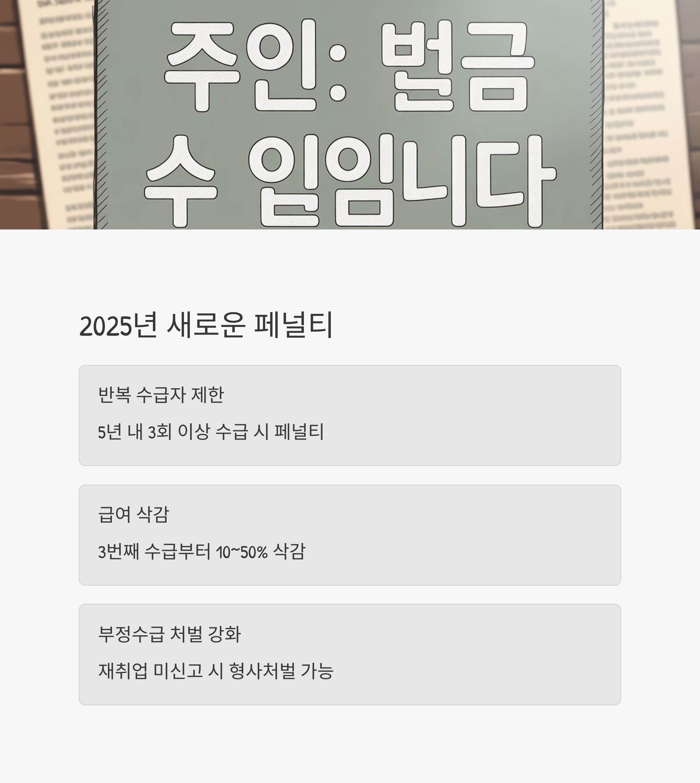 2025년부터는 5년 내 실업급여 수급이 3회 이상인 경우 페널티가 적용됩니다: