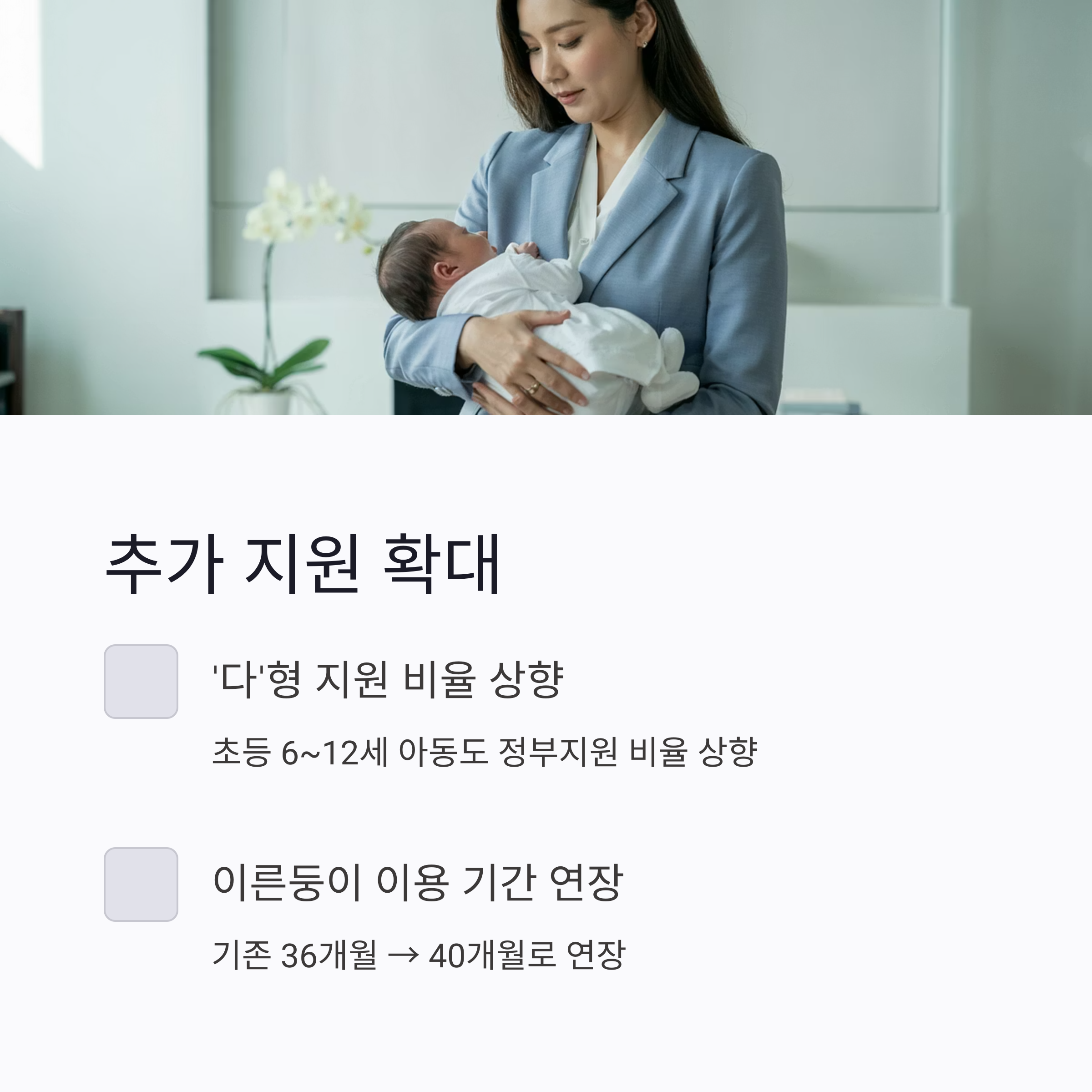 ✅ 이른둥이(미숙아) 이용 기간: 기존 36개월 → 40개월로 연장