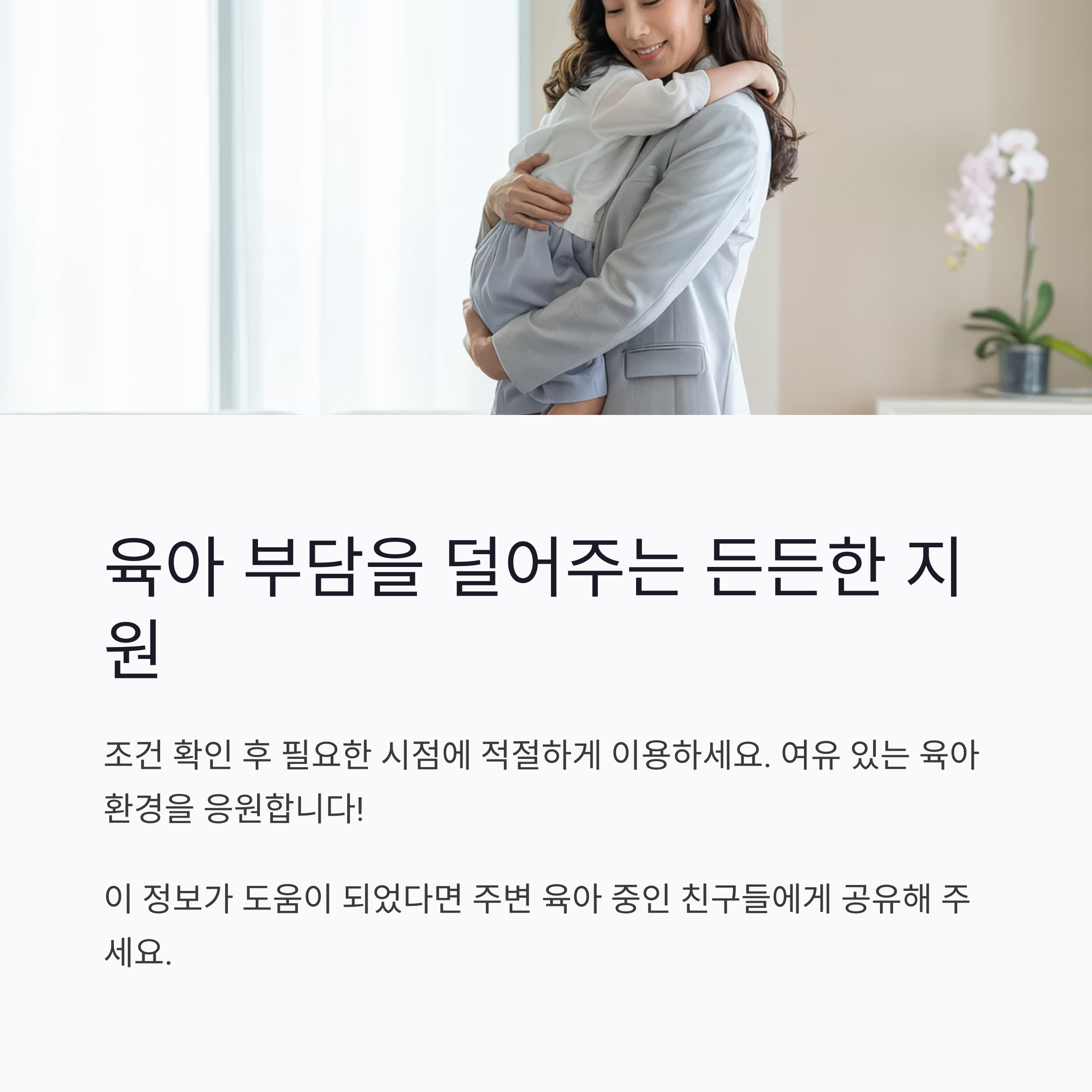조건 확인 후, 필요한 시점에 적절하게 이용하시고, 여유 있는 육아 환경을 만들어가시길 응원합니다.