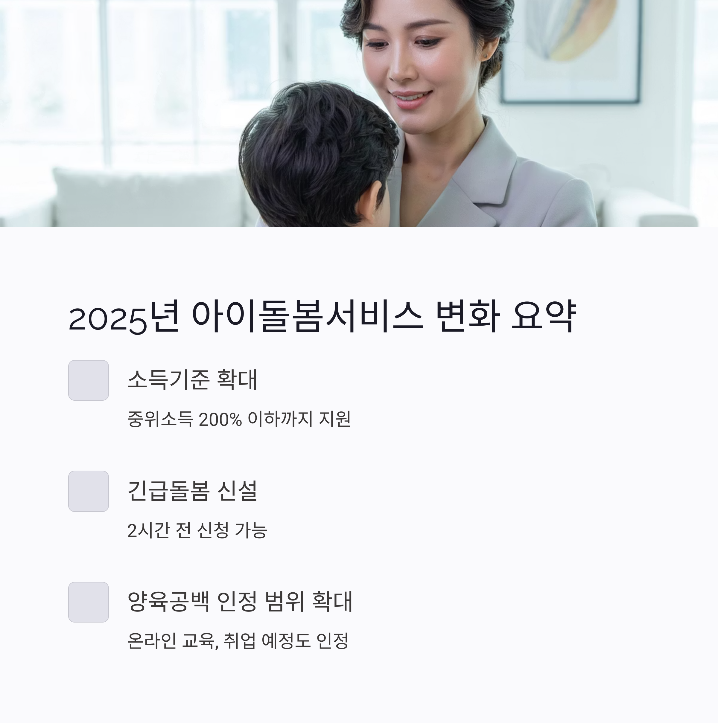 2025년부터 아이돌봄서비스는 더 넓고 다양하게 바뀌었습니다. 맞벌이 가정, 육아 공백이 생기는 부모님들에게는 든든한 지원이 될 수 있어요.