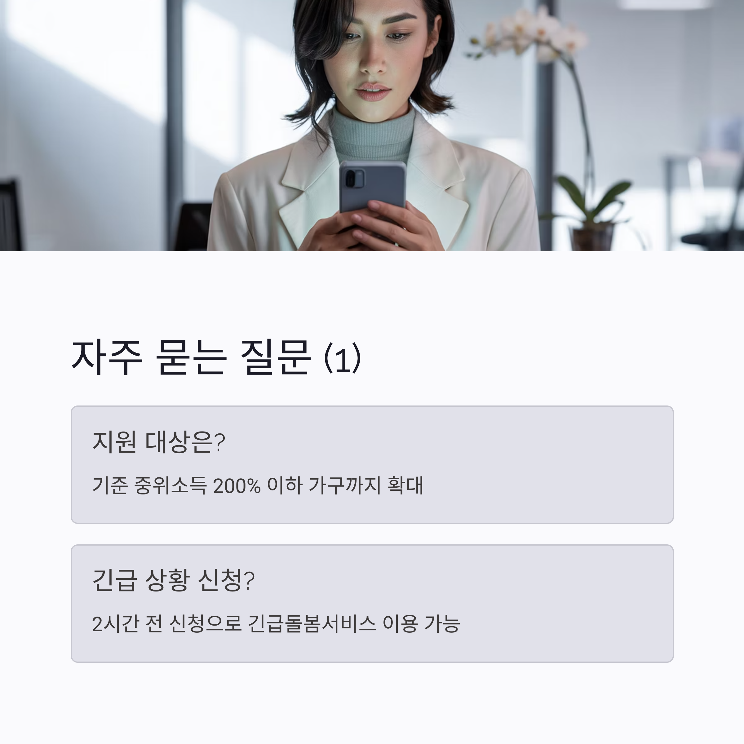 이제 갑작스런 병원 동행, 회의, 출장도 걱정 줄일 수 있어요.