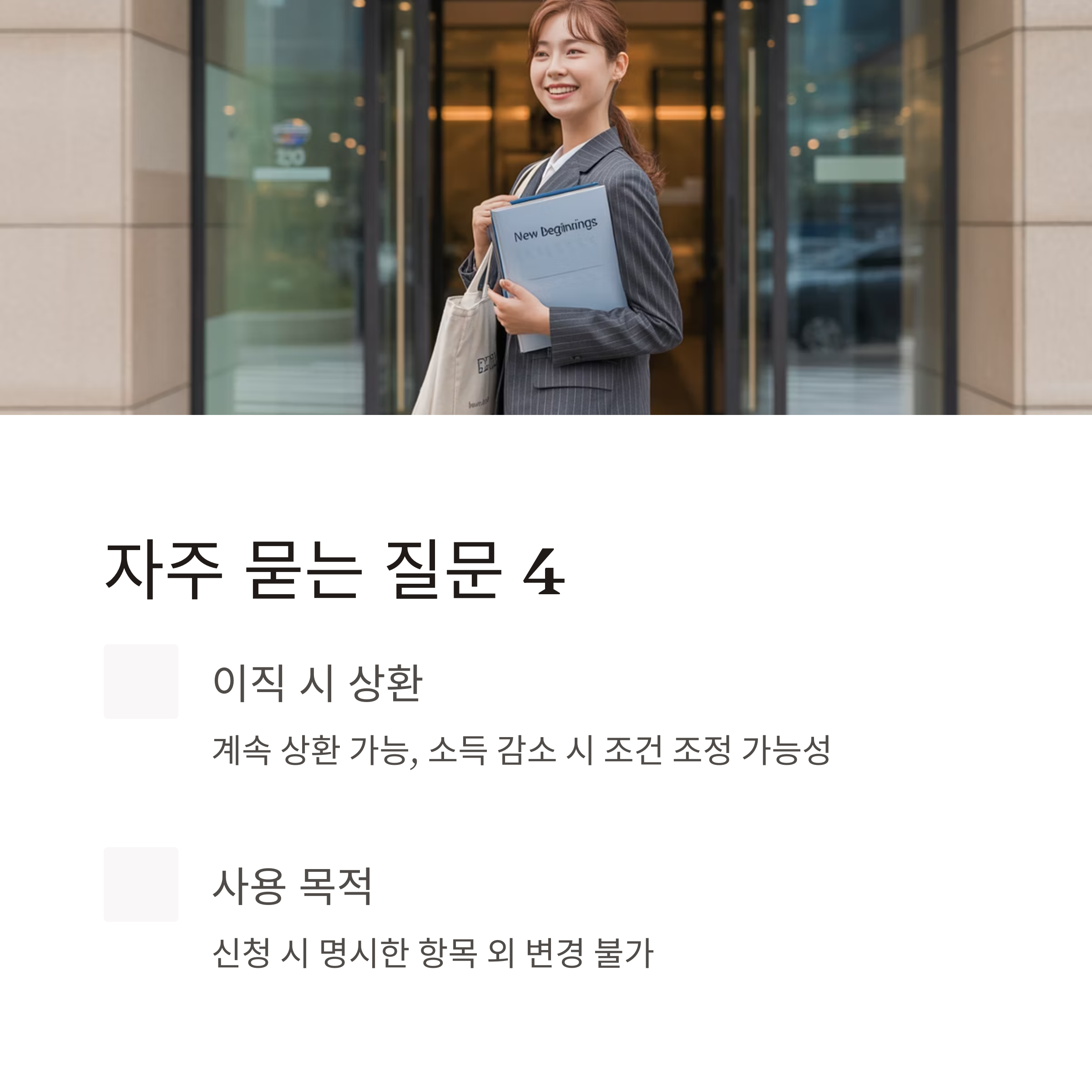 A7. 이직 시에도 계속 상환 가능하며, 소득이 줄어든 경우 조건 조정 가능성이 있습니다.