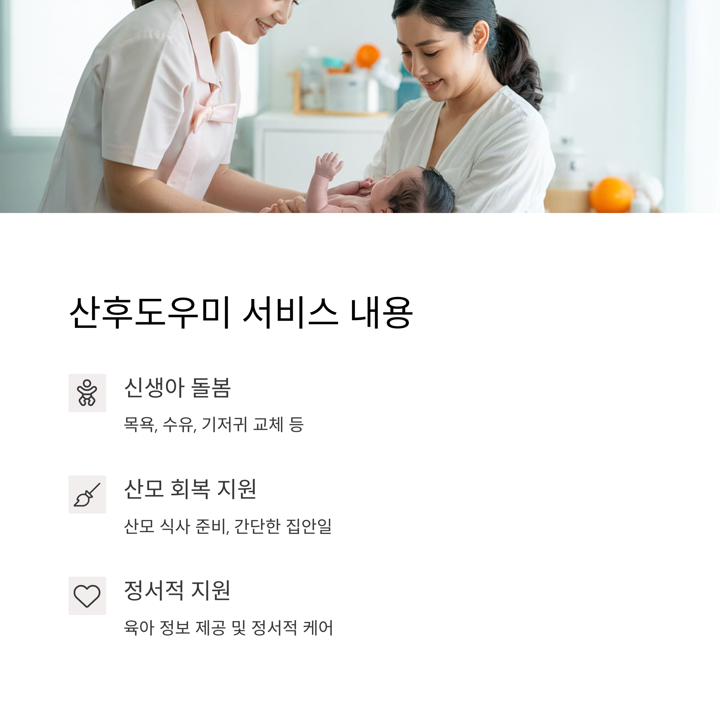 출산 후 산모의 건강 회복과 신생아 돌봄을 도와주는 산후도우미 서비스