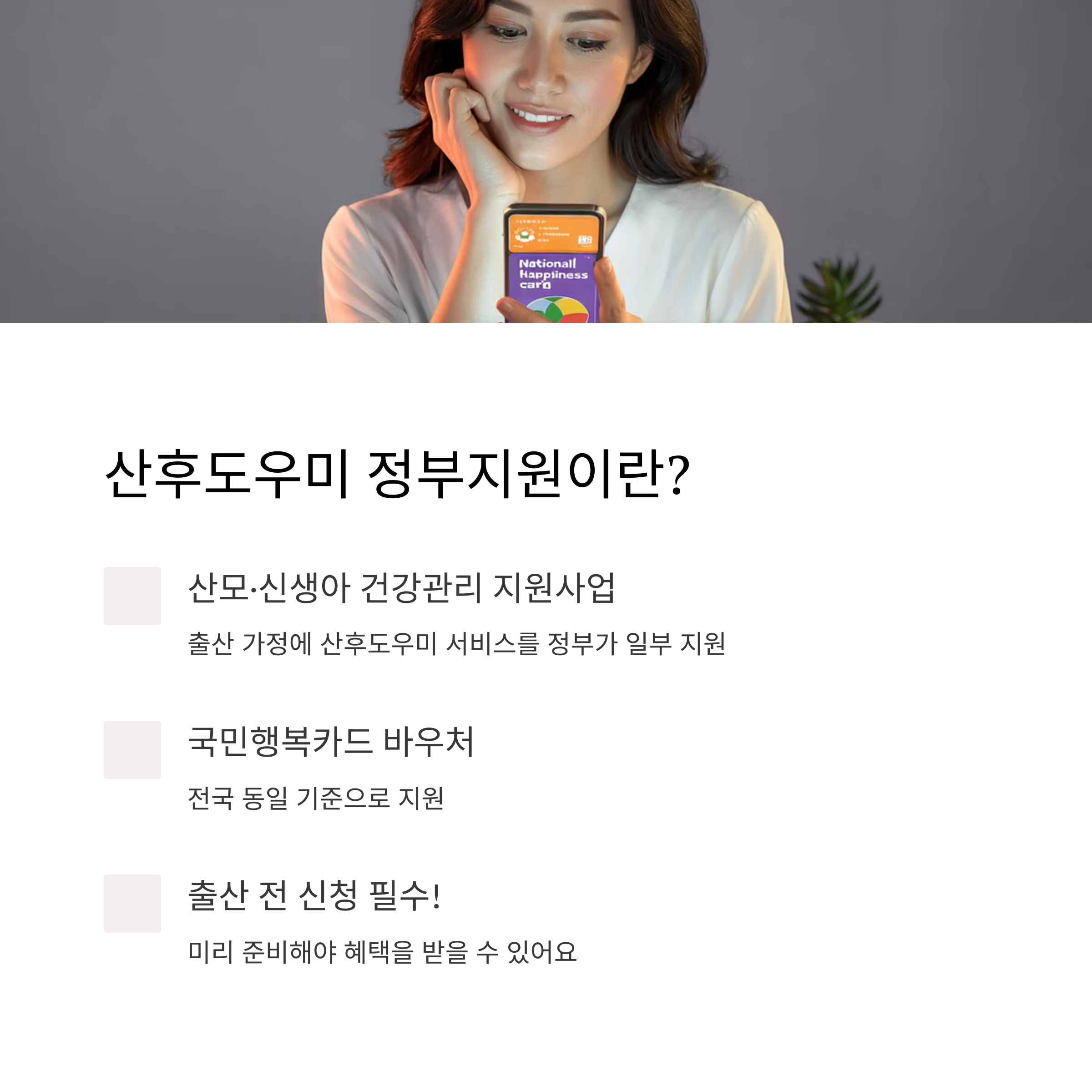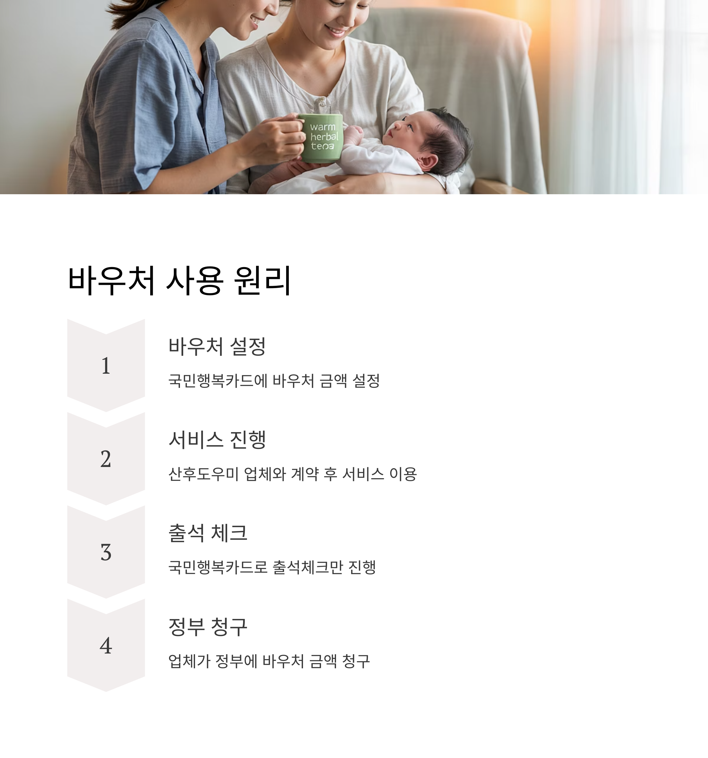 산후도우미 서비스를 정부가 일부 지원하는 제도입니다.