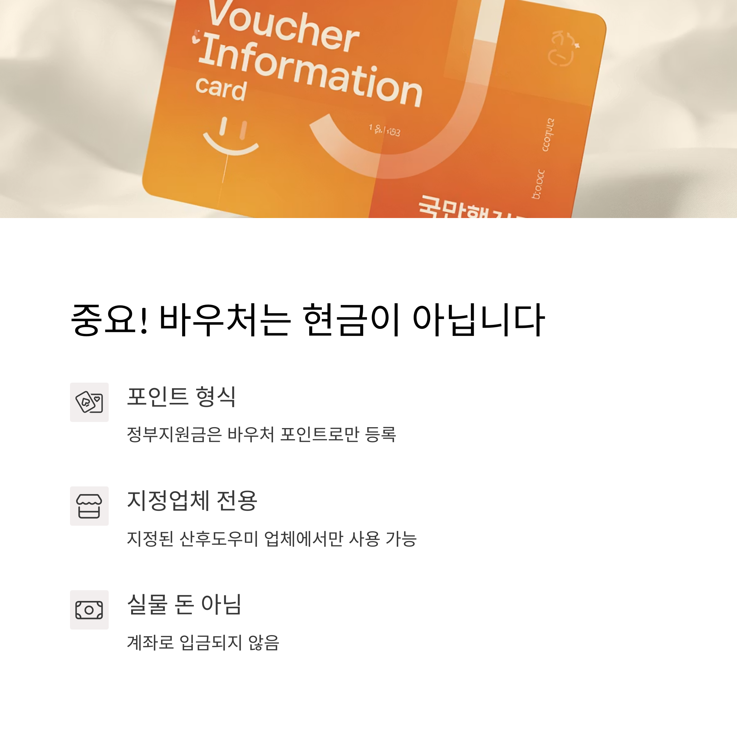 정부지원금은 바우처 포인트 형식으로 등록되며, 직접 지급받는 방식이 아닙니다.