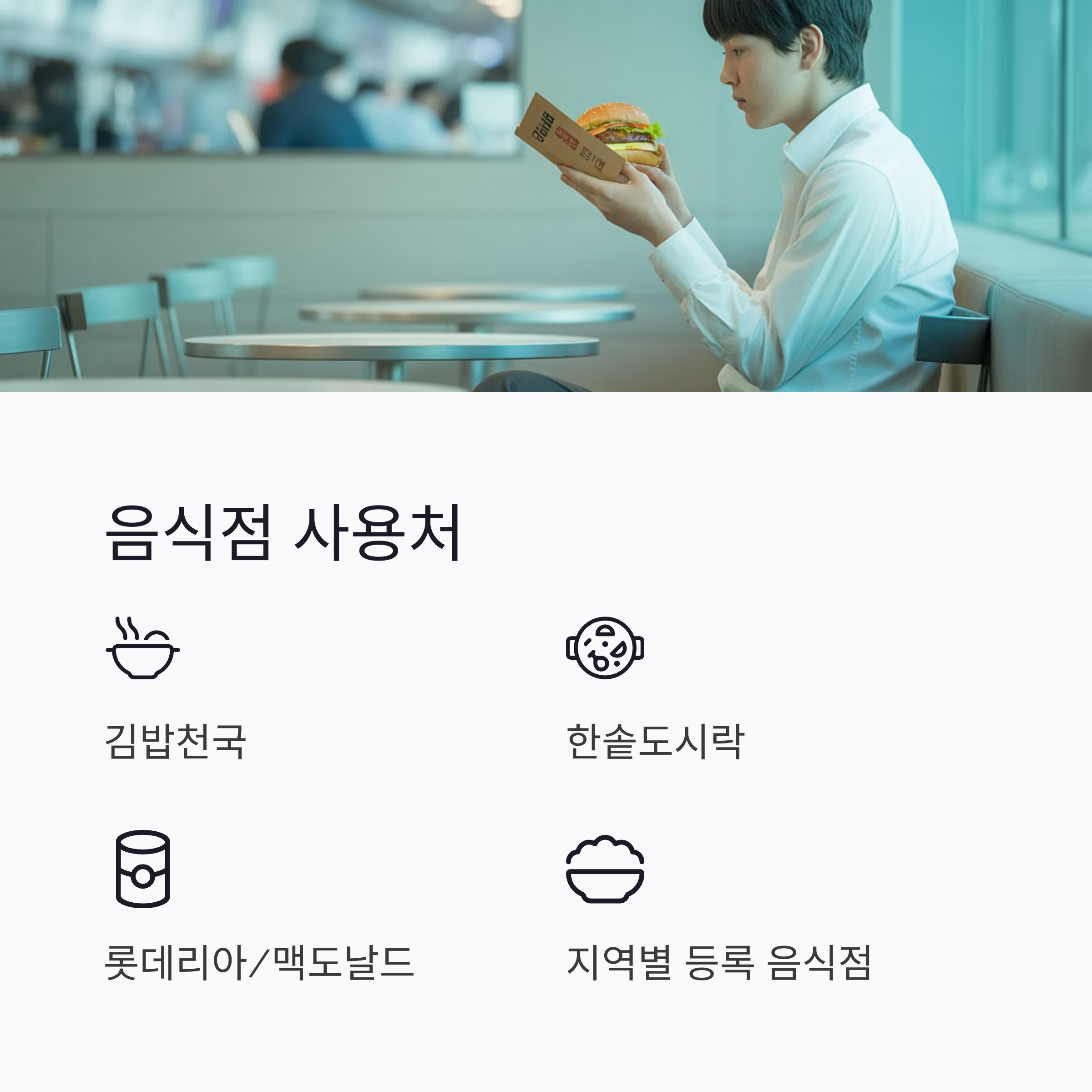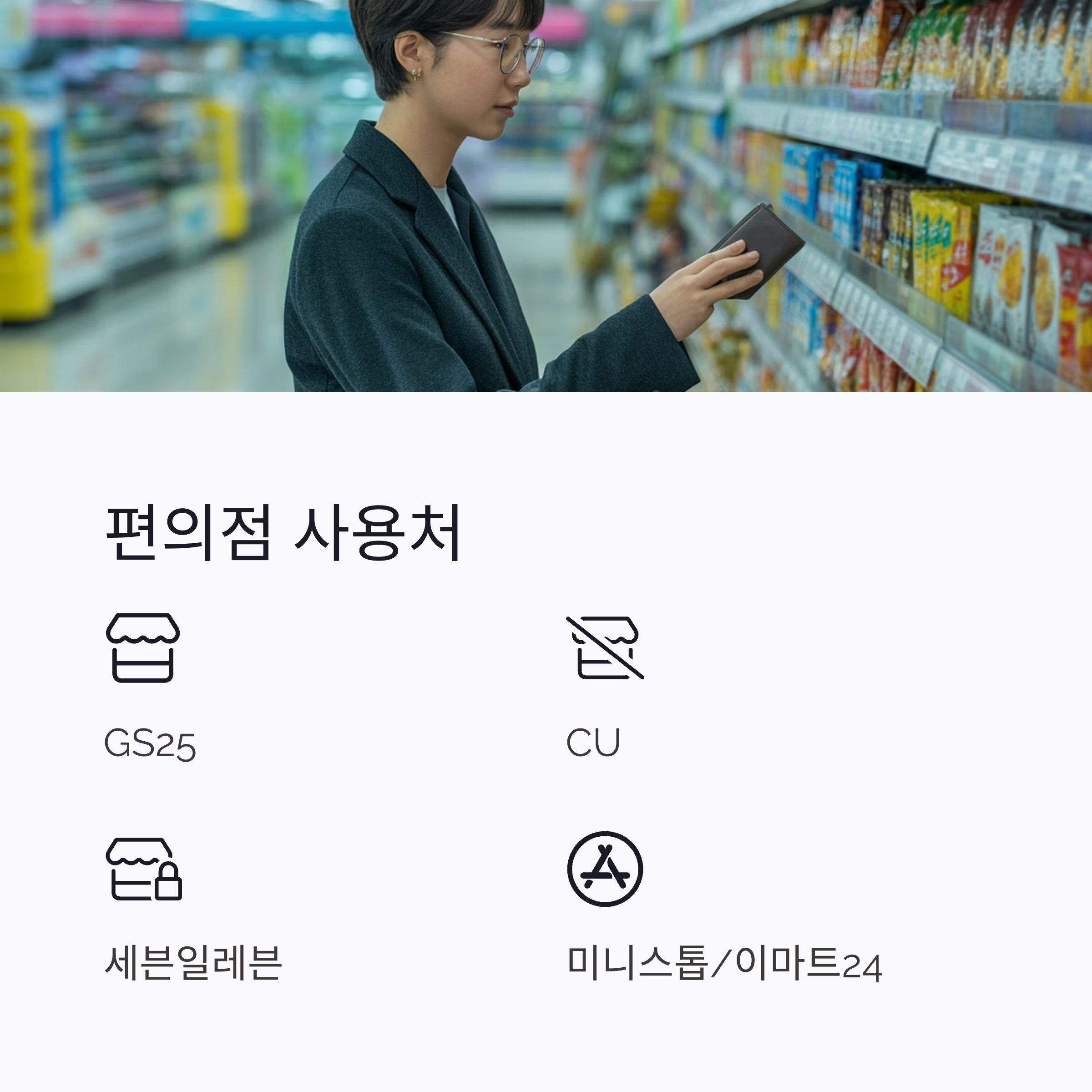 A4. 등록된 편의점 및 음식점에서 사용 가능합니다. (예: GS25, 한솥도시락 등)