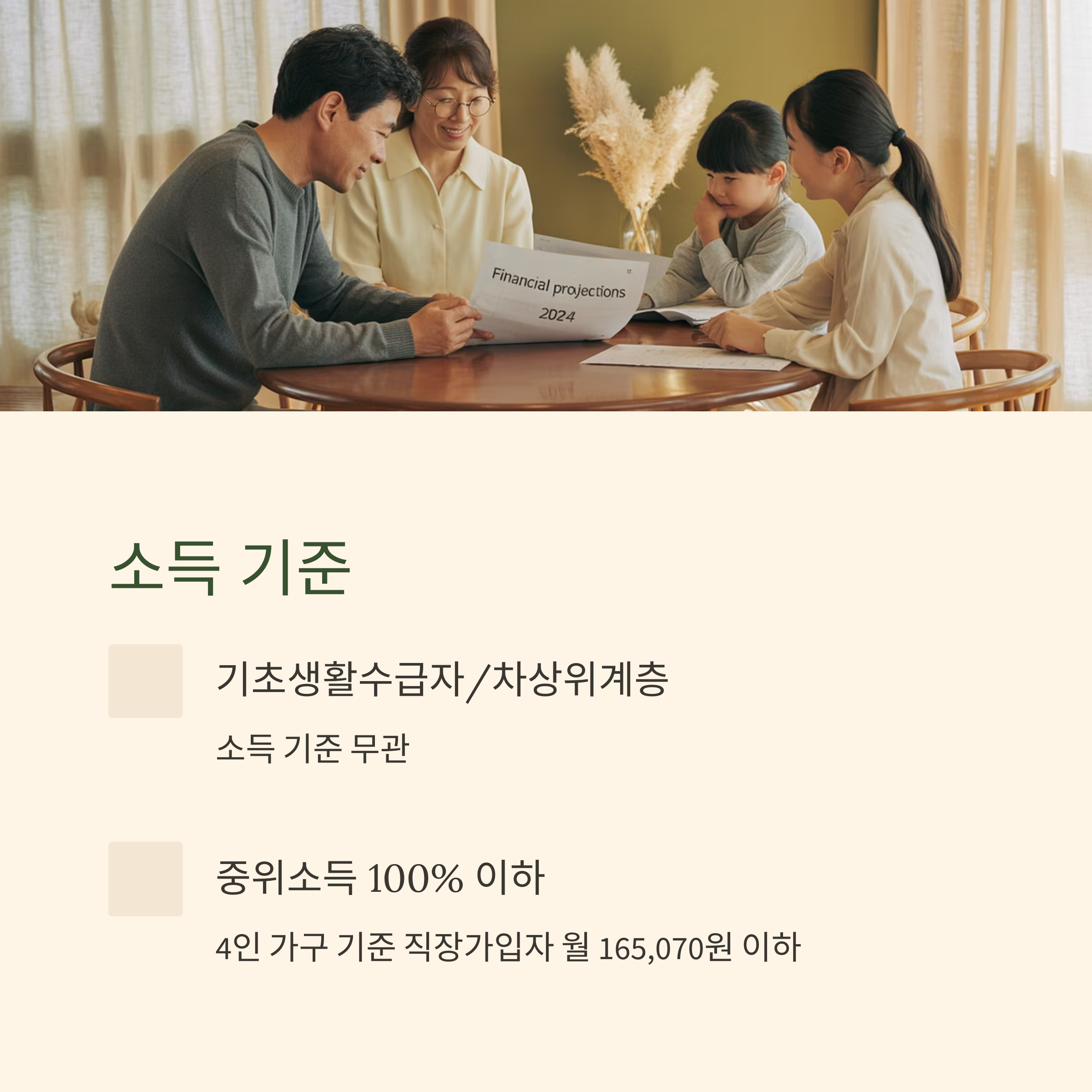 ※ 기준 중위소득: 전국 가구의 중간 소득선으로 매년 고시됨