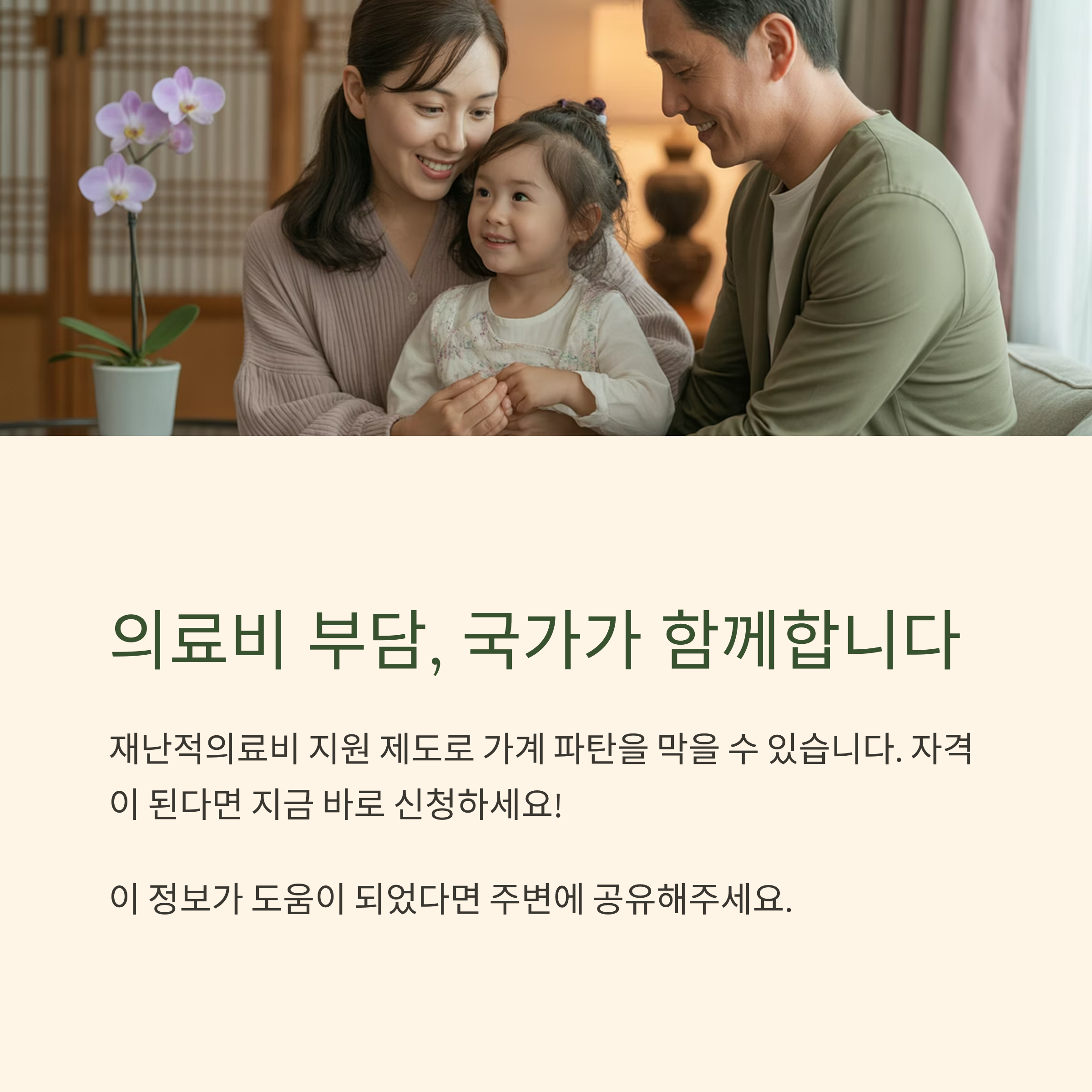 하지만 정부의 재난적의료비 지원 제도를 잘 활용하면 가계 파탄을 막을 수 있는 중요한 기회가 됩니다.