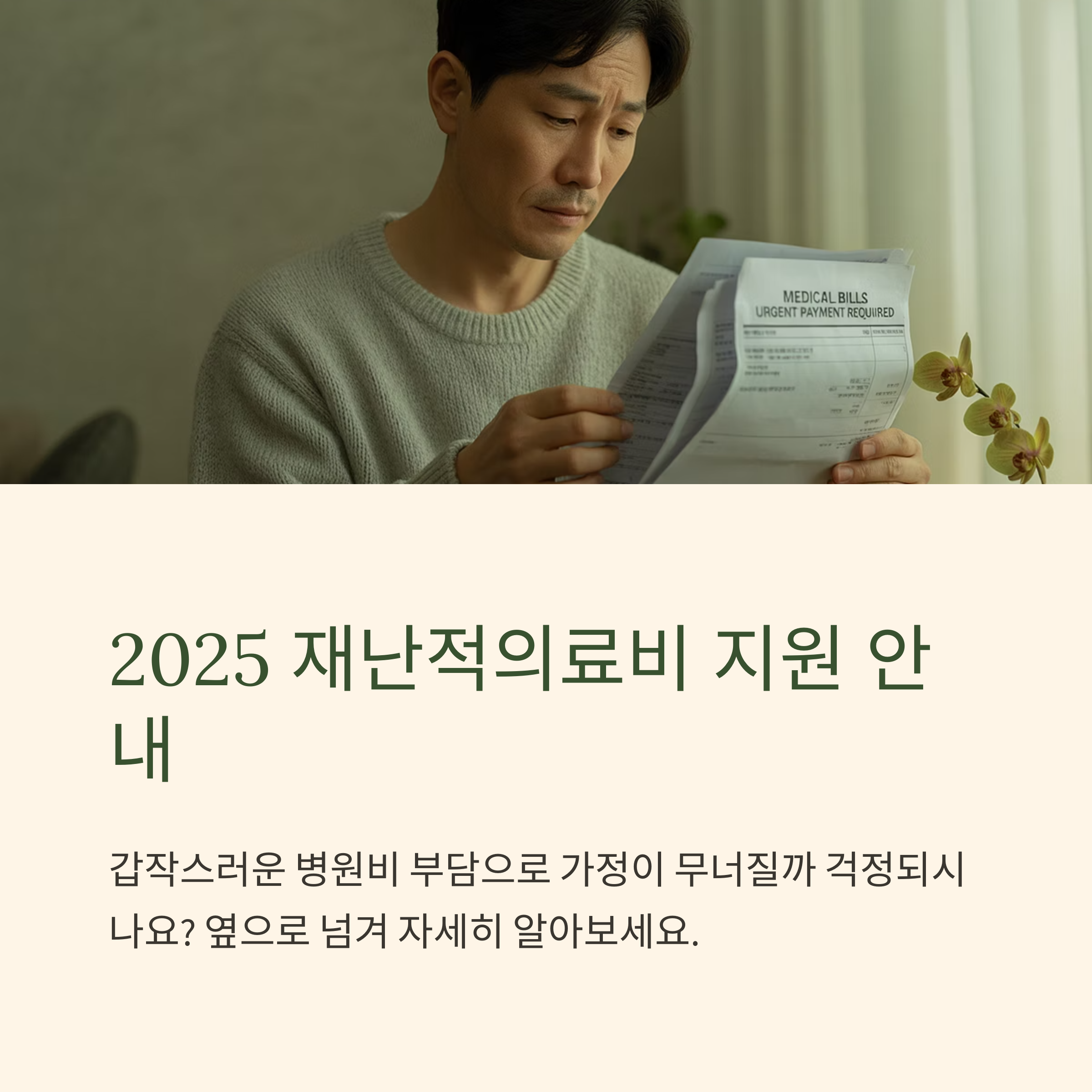 갑작스러운 병원비 부담으로 가정이 무너질까 걱정되시나요?