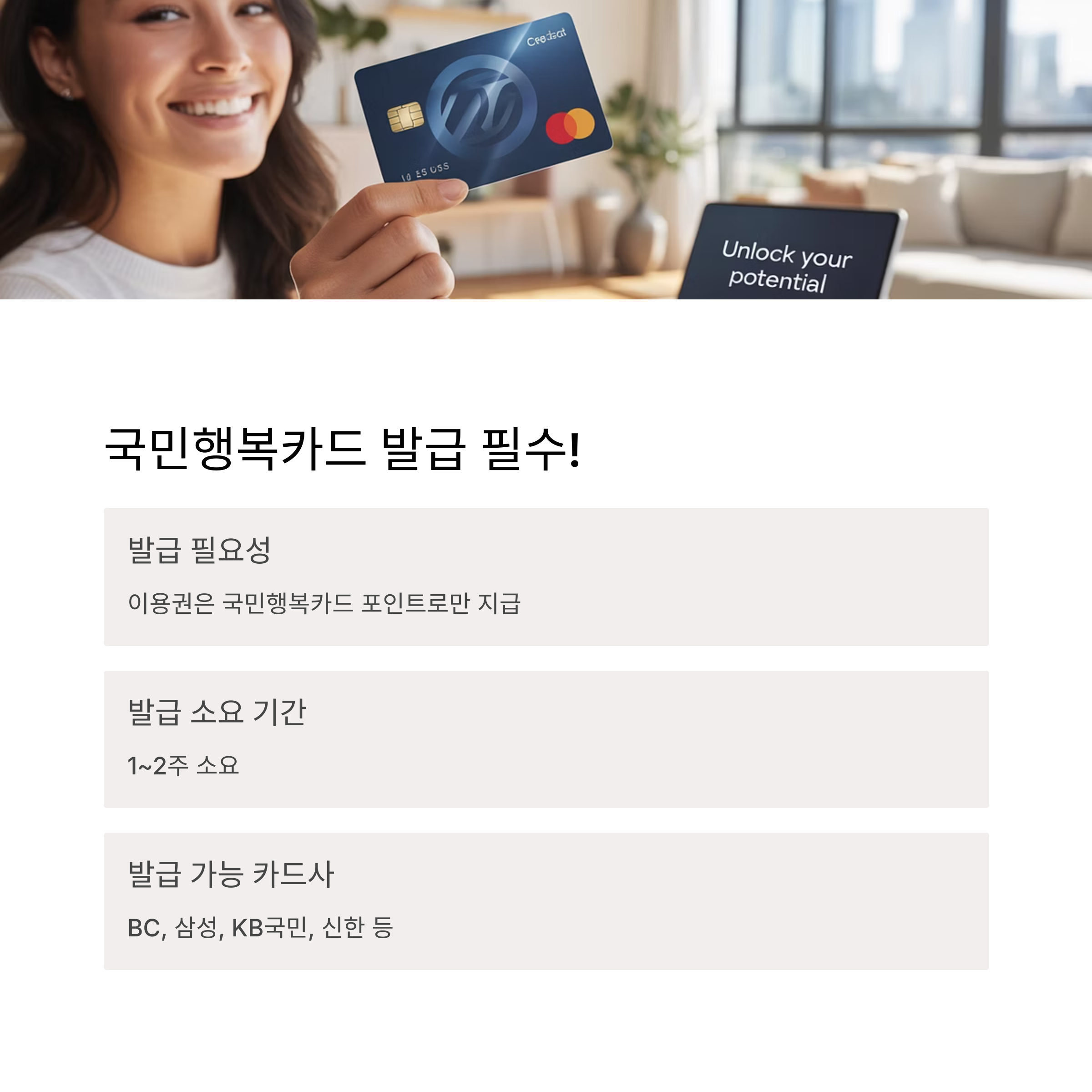 ✅ 국민행복카드는 BC, 삼성, KB국민, 신한 등 주요 카드사에서 발급 가능
