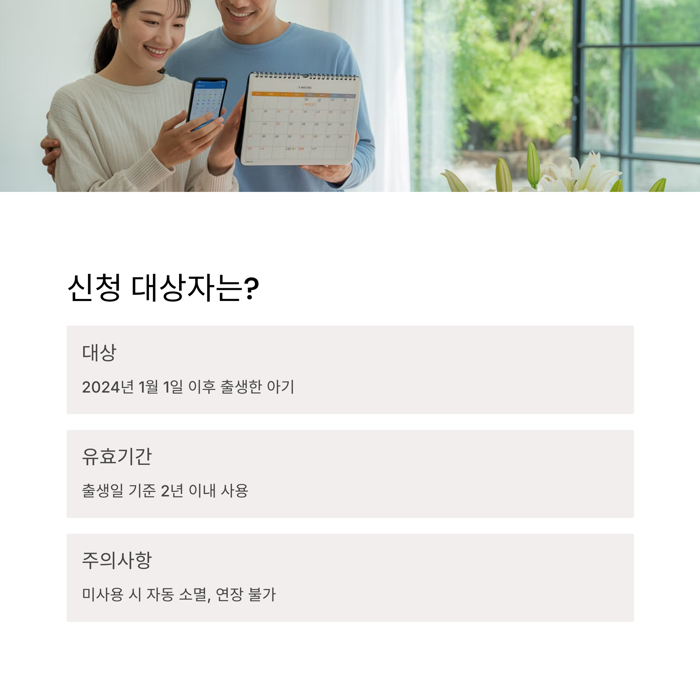 ✅ 예시: 2025년 1월 1일 출생 아기 → 2026년 12월 31일까지 사용 가능