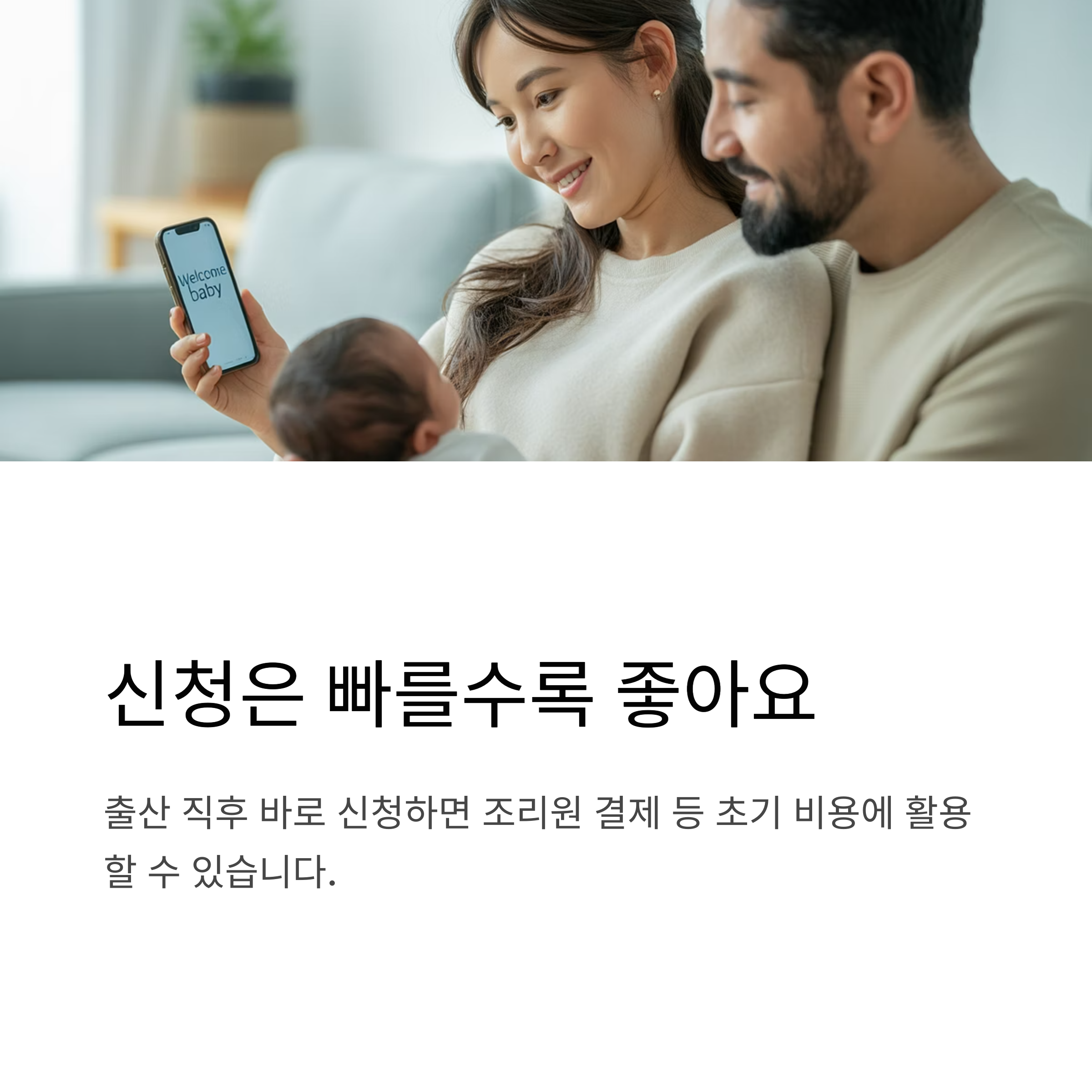 놓치지 말고 반드시 신청하여 육아의 시작을 조금 더 가볍게 하시길 바랍니다.