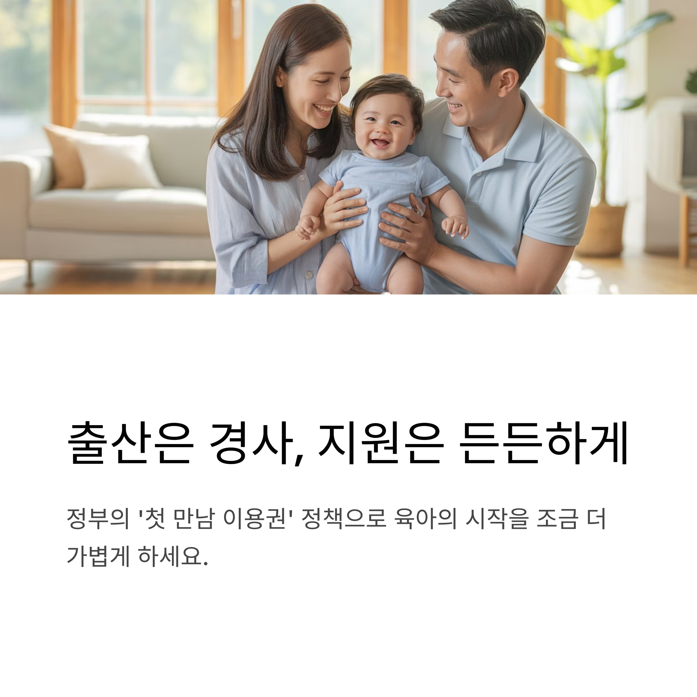 2025년, 출산가정을 위한 정부 지원 혜택이 더 강화됩니다. 그 중심에는 바로 ‘첫 만남 이용권’이 있는데요. 출산 초기 가계 부담을 덜어주는 이 제도는 많은 예비 부모에게 실질적인 도움이 됩니다. 오늘은 2025년 기준 첫 만남 이용권의 신청방법, 사용처, 지급일, 잔액조회까지 꼼꼼히 정리해드릴게요.
