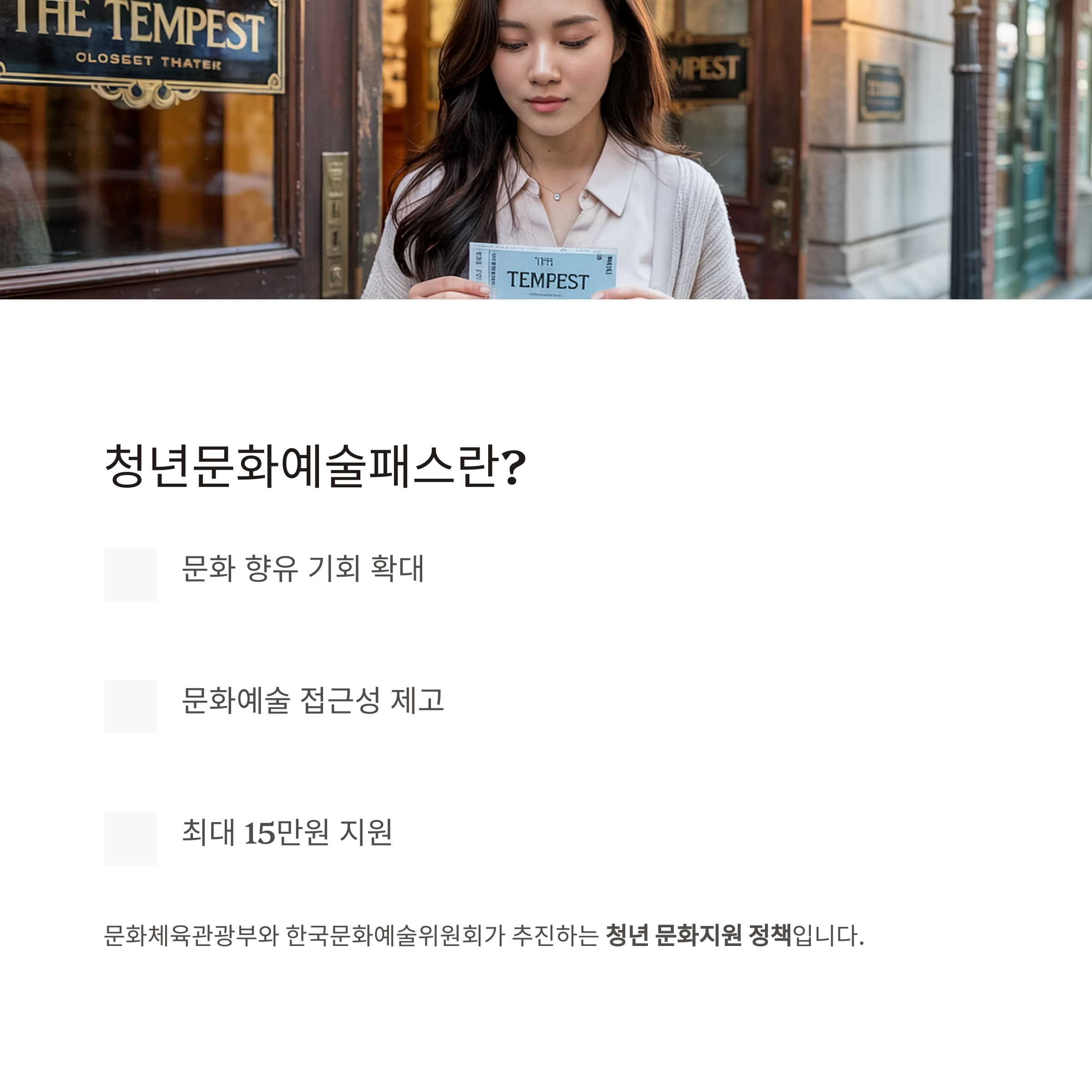✔ 공연·전시 등 관람비 최대 15만 원 지원