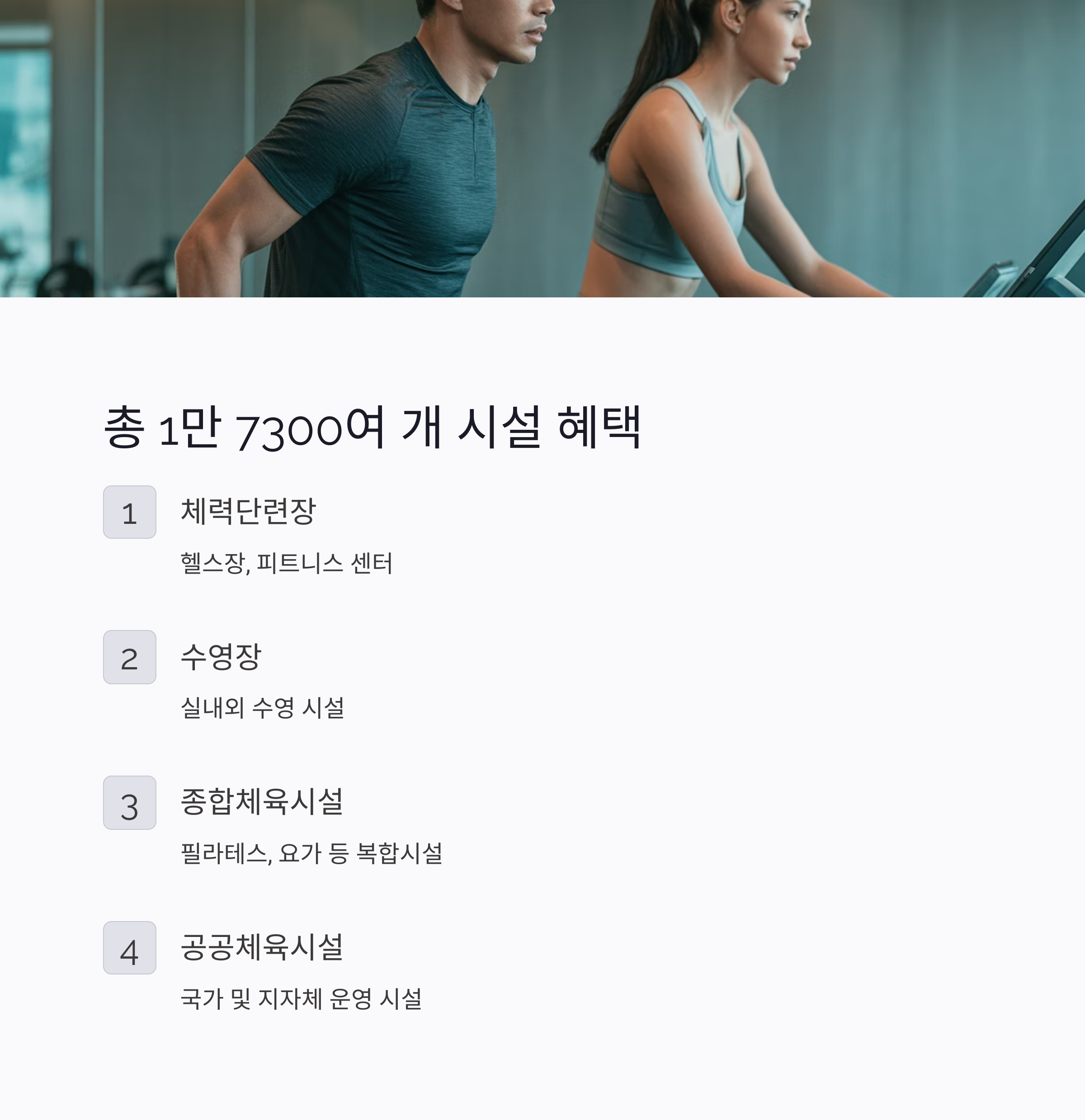 수영장, 복합 체육시설(필라테스, 요가 등), 공공 체육관 등도 포함됩니다.