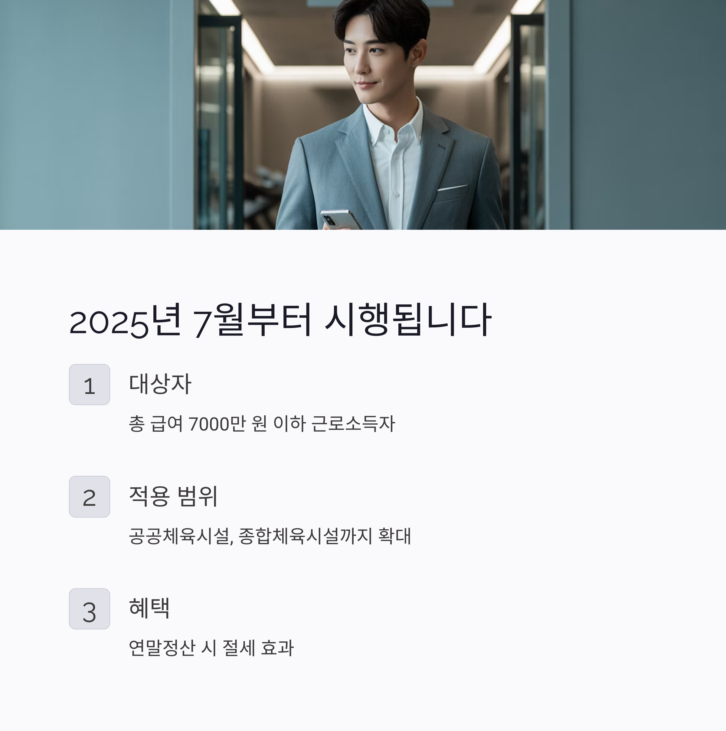 2025년 7월부터 체육시설 이용료 소득공제 제도가 본격적으로 시행됩니다. 총 급여 7000만 원 이하의 근로소득자가 대상이며, 공공체육시설과 종합체육시설까지 적용 범위가 확대되었습니다. 이제 실내체육관, 수영장, 헬스장, 복합 스포츠센터 이용도 절세 혜택을 받을 수 있습니다. 이번 정책이 어떤 변화를 이끌지,
