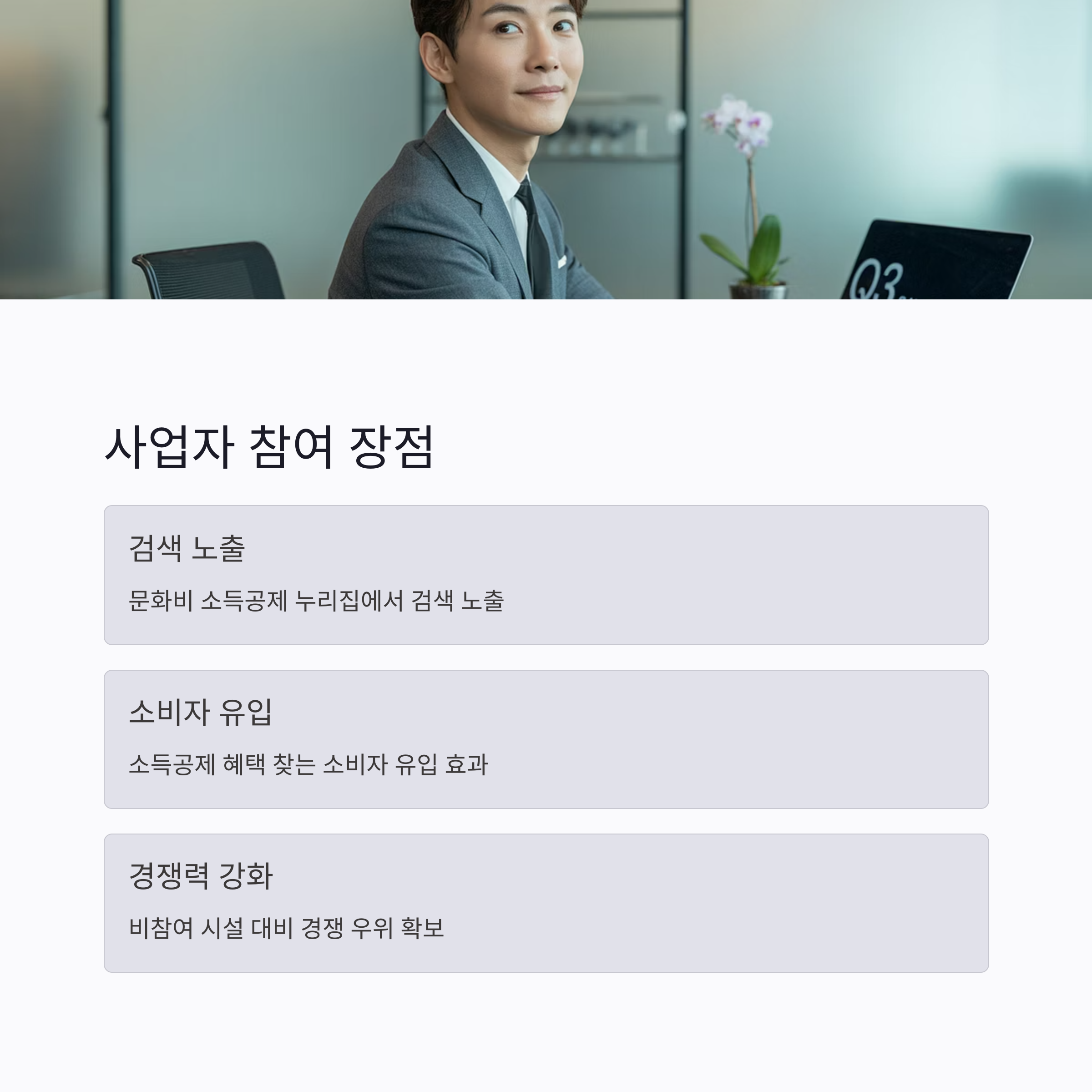 참여 시 문화비 소득공제 누리집에서 검색 노출되어 소비자 유입 효과를 기대할 수 있습니다.